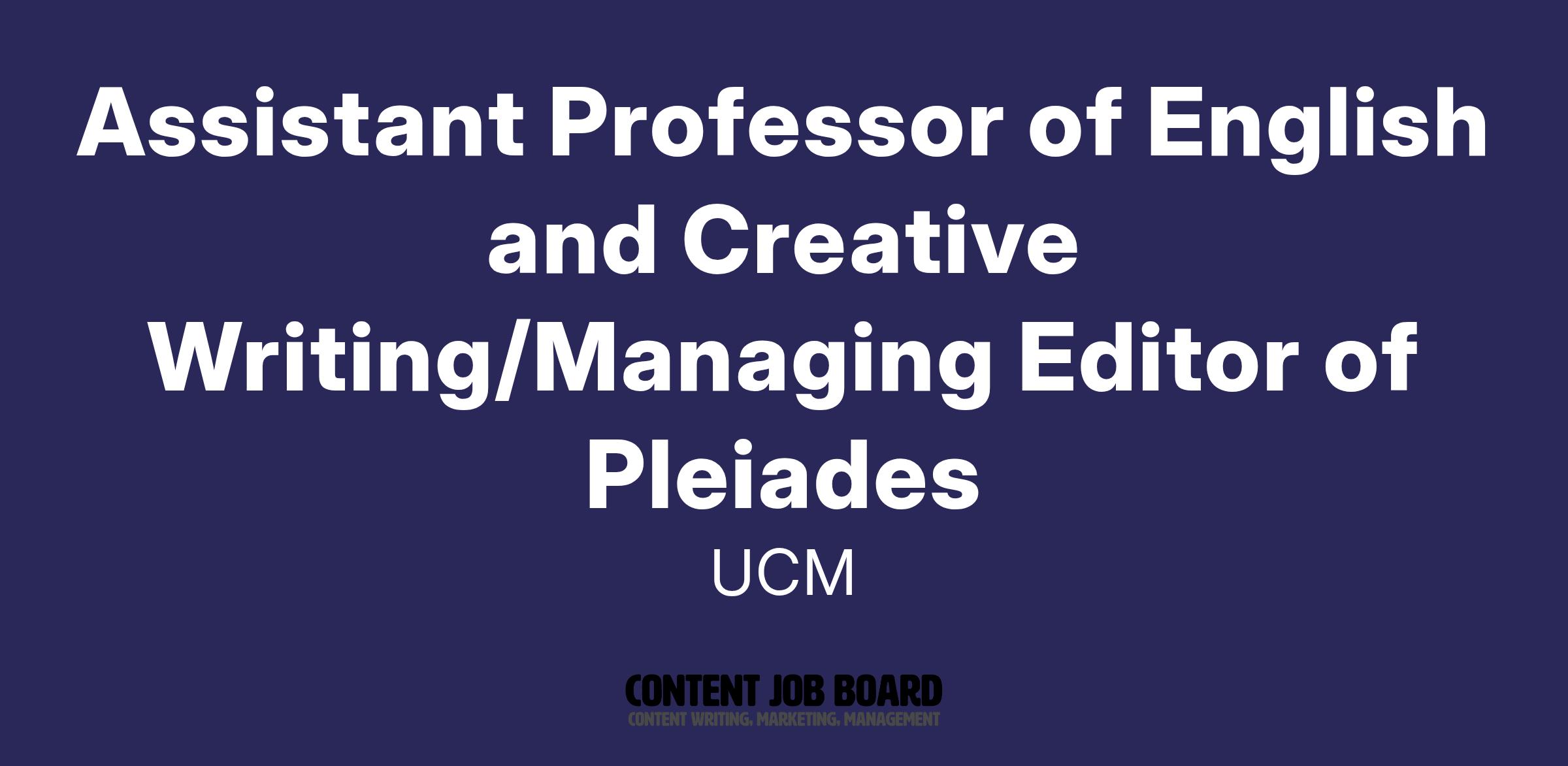 The University of Central Missouri's Department of English invites applications for a tenure-track position as an Assistant Professor of English and Creative Writing, as well as Managing Editor of Pleiades: Literature in Context magazine, starting in fall 2026.