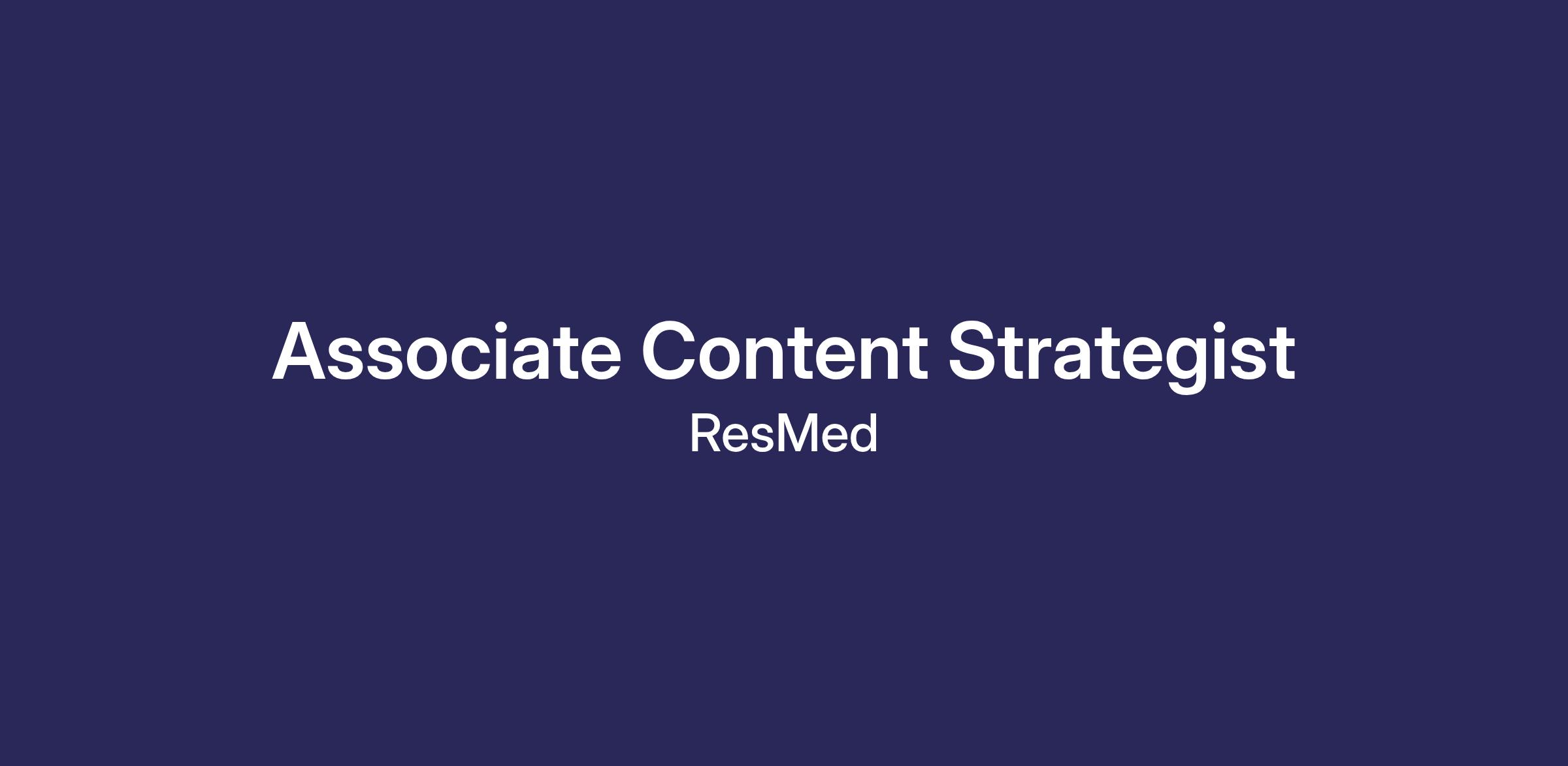 We’re looking for an Associate Content Strategist to support our consumer health companion app, myAir. This role is grounded in content strategy—supporting how we plan, structure, test, and evolve content systems in partnership with product teams. You’ll support strategic initiatives that shape how we guide and support customers through their sleep health journey.