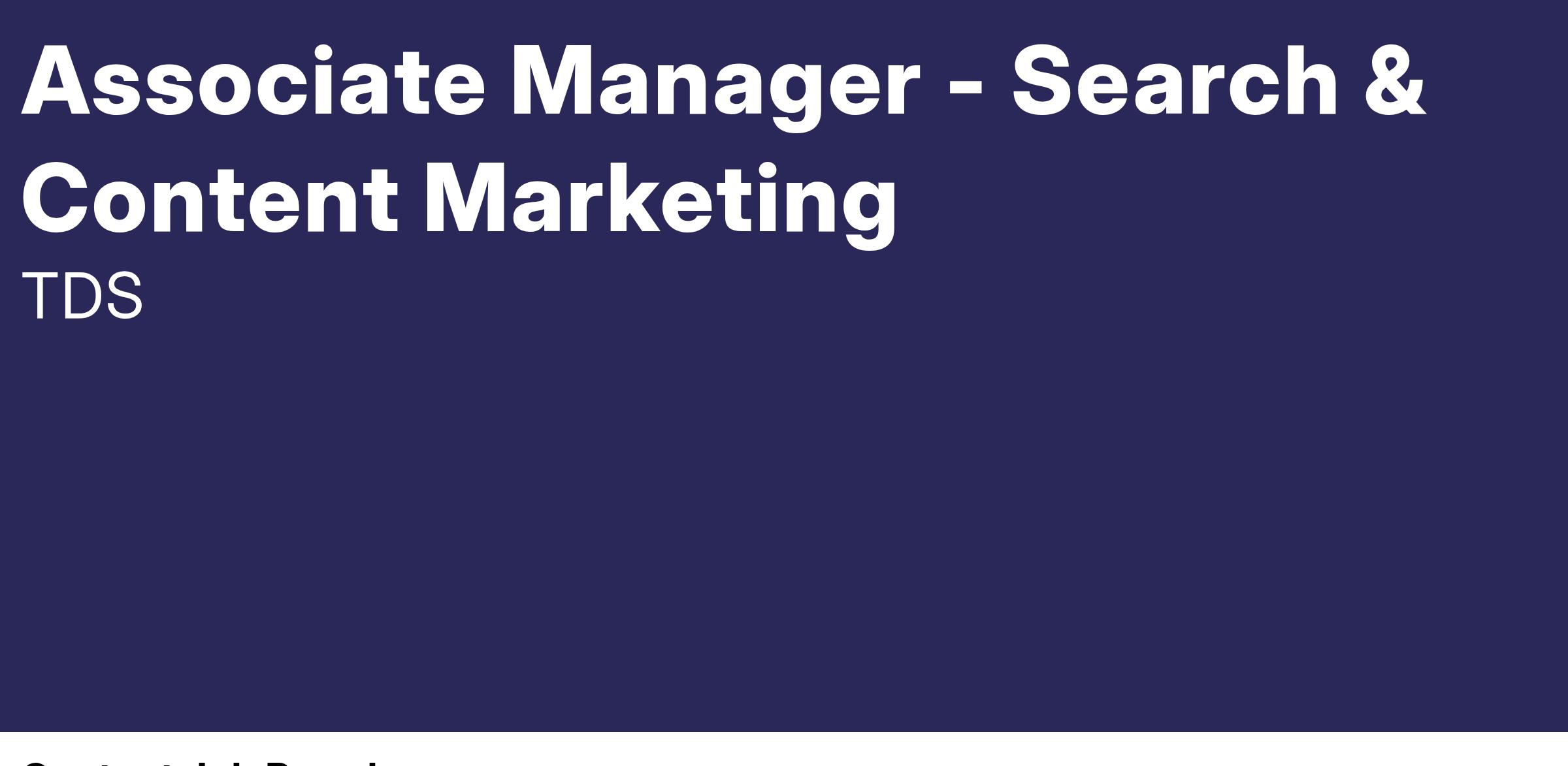 We have an exciting opportunity for an Associate Manager - Search and Content Marketing! This position is responsible for driving online conversion through development and execution of product and service content strategies in alignment with both short-term and long-term goals. The role leads Organic Search Engine Optimization (SEO) initiatives to generate demand and maximize the volume of inbound traffic from search engines to the TDS websites.