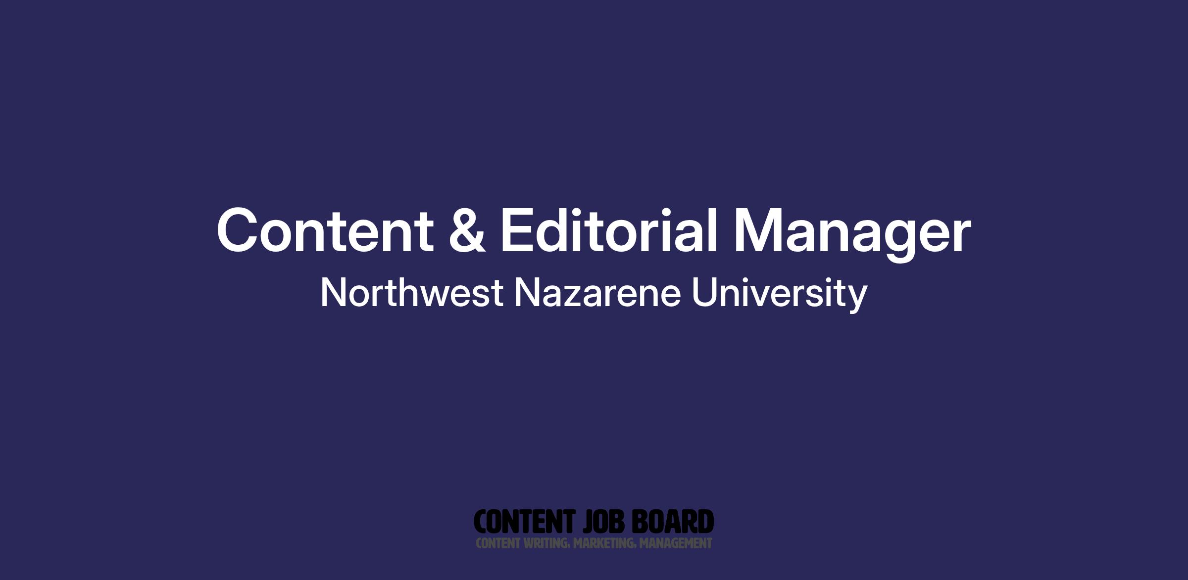 Northwest Nazarene University is an Equal Opportunity employer. As an educational institution operating under the auspices of the Church of the Nazarene, Northwest Nazarene University is permitted, and reserves the right, to prefer employees on the basis of religious preference.