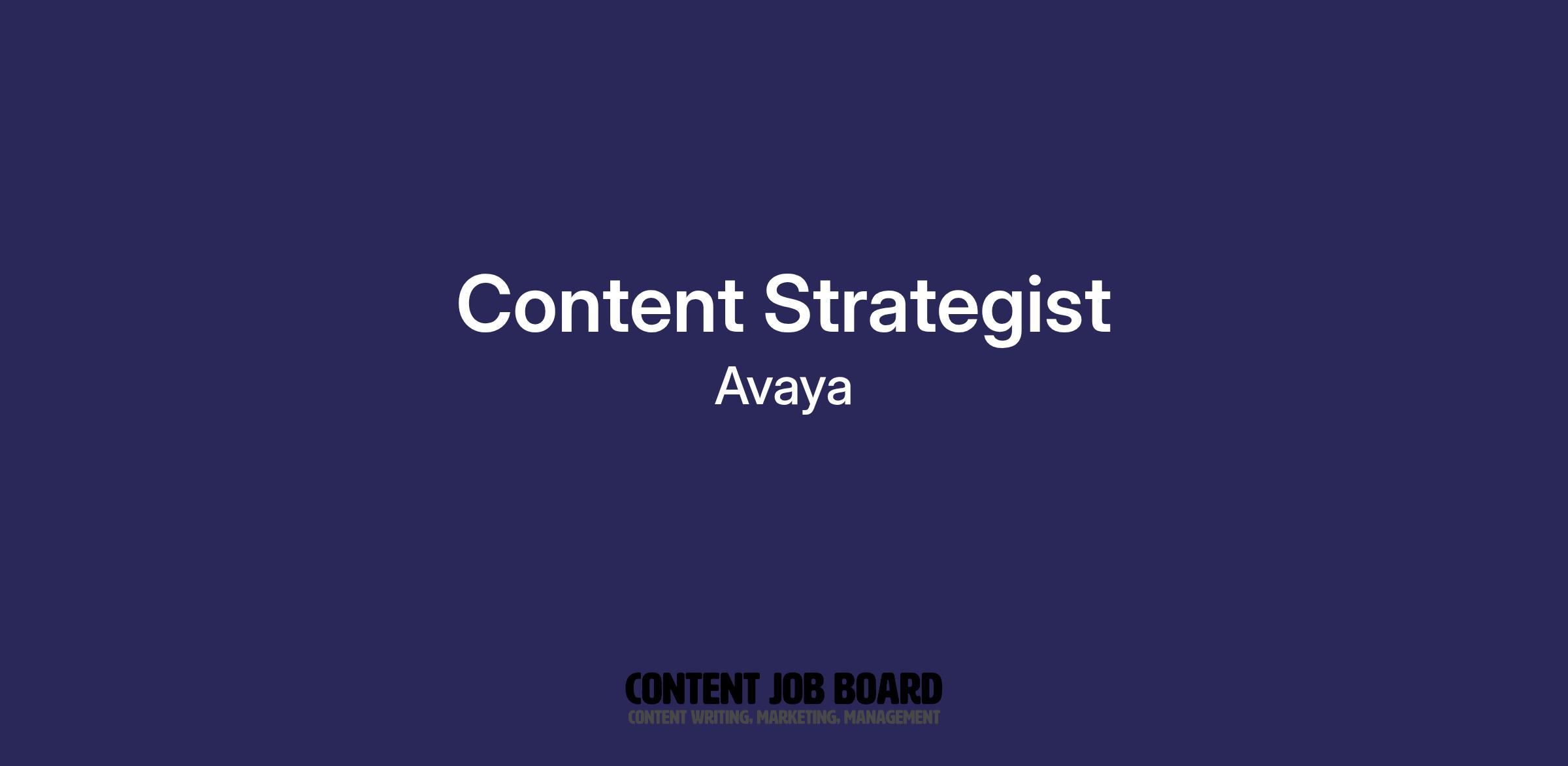The content strategist at Avaya is the linchpin for our brand narrative and the company’s go-to-market strategy. The person in this role will understand our brand position and key marketing initiatives. Using this insight, you will be responsible for determining our content focus, key asset development, and activation timeframe.