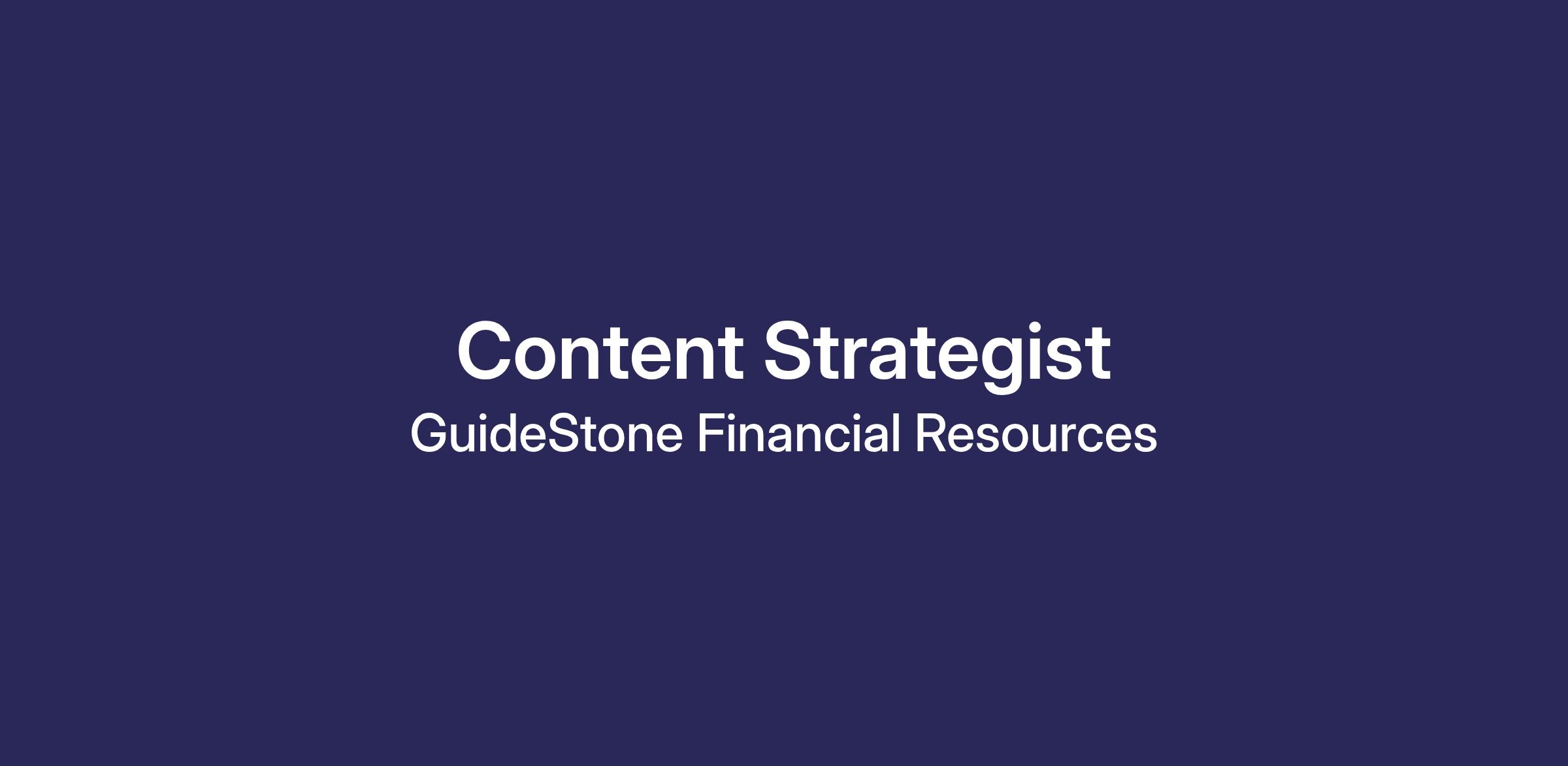 The content strategist will collaborate with the lines of business, marketing and experience teams across the enterprise — growth, experience, investments, Mission:Dignity, marketing and more — to ensure consistent and persuasive messaging across different media channels, such as web, email, direct mail, video, blogs, webcasts, podcasts, events and more. This individual will manage content that increases engagement and builds brand awareness for GuideStone and also educates to ensure our members and ministry partners are starting, staying and finishing well.