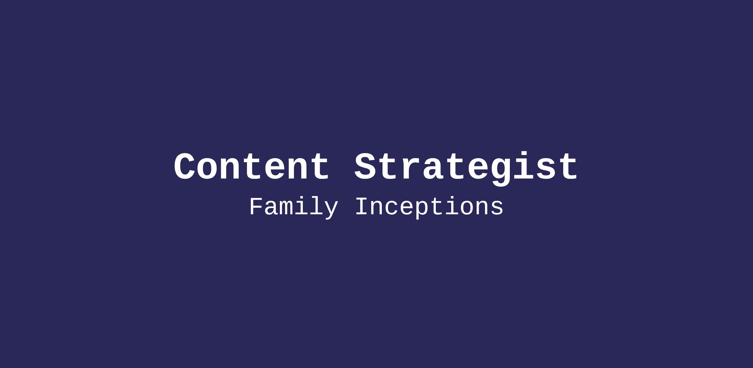 About the Role We are a multi-brand organization in family building and women’s health, and we are hiring a Content Strategist to own and lead content across our brand ecosystem.
