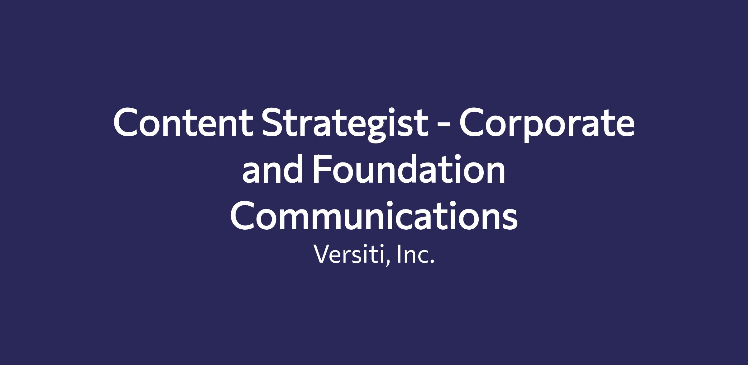 The Content Strategist – Corporate and Foundation Communications plays an important role in bringing Versiti's mission to life through strategic storytelling and integrated content development that engages key external audiences. Reporting to the Sr. Manager, Media and Public Relations, this role develops and delivers compelling content that elevates Versiti's corporate brand, advances the organization's philanthropic mission, and strengthens engagement with important stakeholders—including blood donors, philanthropic supporters, commercial partners, community leaders, and healthcare collaborators. The position supports multi-channel storytelling that reflects the breadth of Versiti's work across blood health, innovation, community partnership, and philanthropy. Working closely with communications, marketing, creative, and advancement colleagues, the Content Strategist translates complex ideas into clear, human, and mission-driven narratives that inspire awareness, trust, and action.