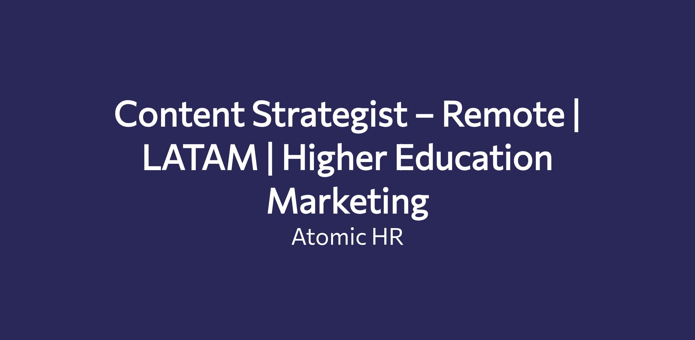 Content Strategist – Remote | LATAM | Higher Education Marketing