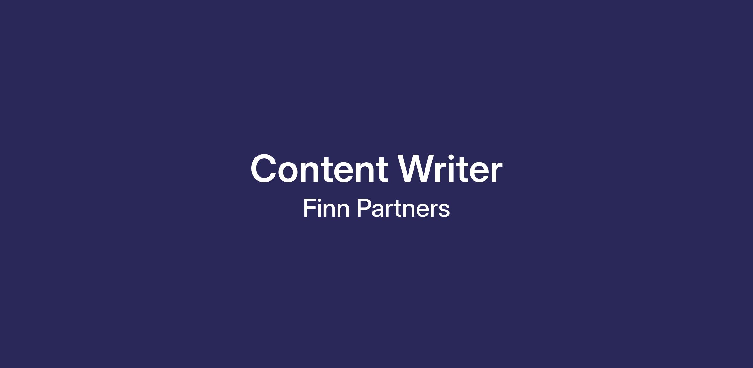 The opportunity: The growing 40+ person creativeteam at FINN Partners needs a writing ace who writes with insight, not just instinct. You’ll tackle a wide range of assignments for our financial services clients—always through the lens of audience needs, client objectives, and business impact.