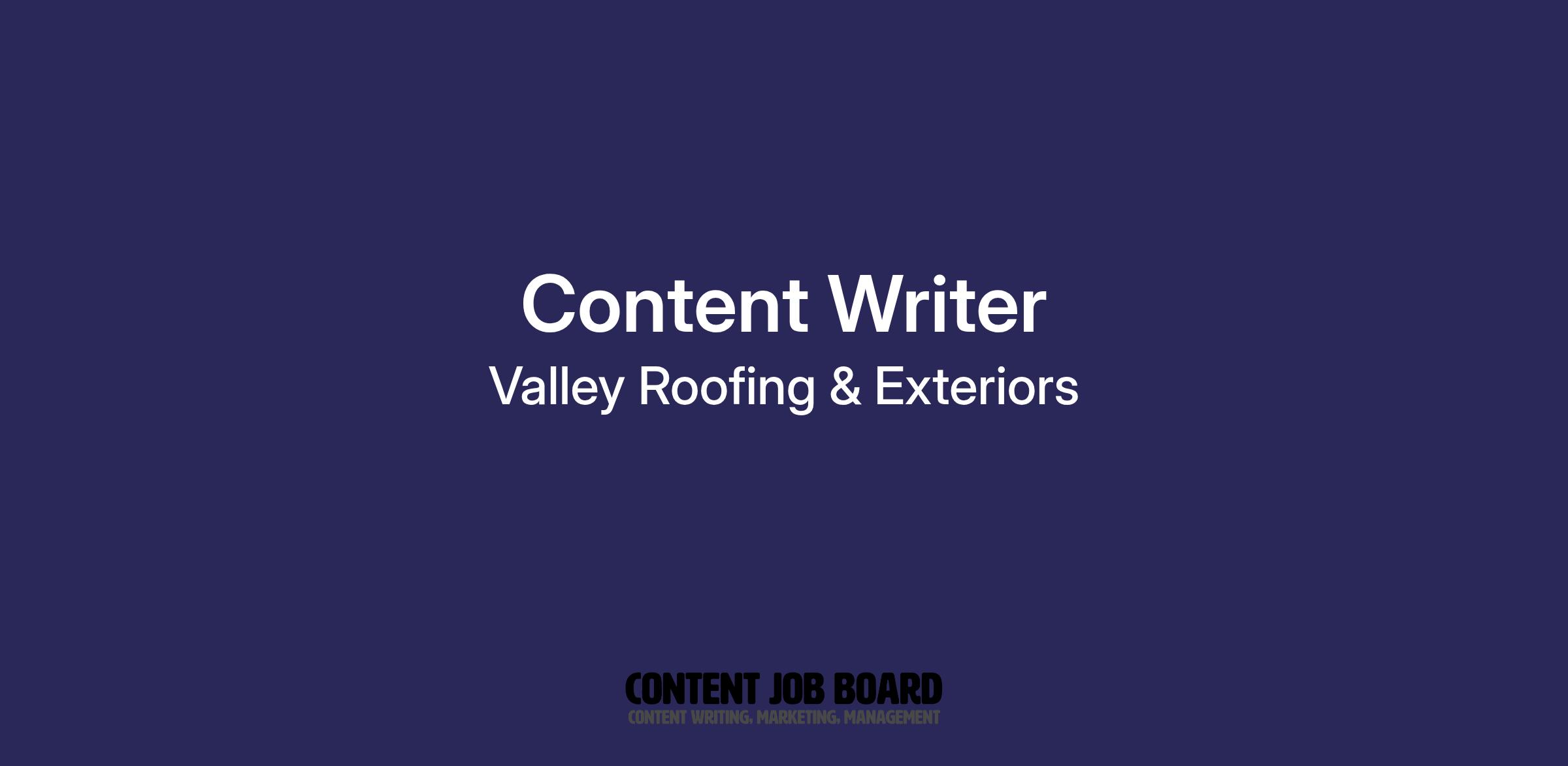 Valley Roofing is seeking a Content Writer to own our inbound marketing and content strategy. Your primary goal: drive qualified traffic, leads, and sales through high-performing web content that answers customer questions and positions Valley Roofing as the authority in roofing, storm restoration, and home exterior services.
