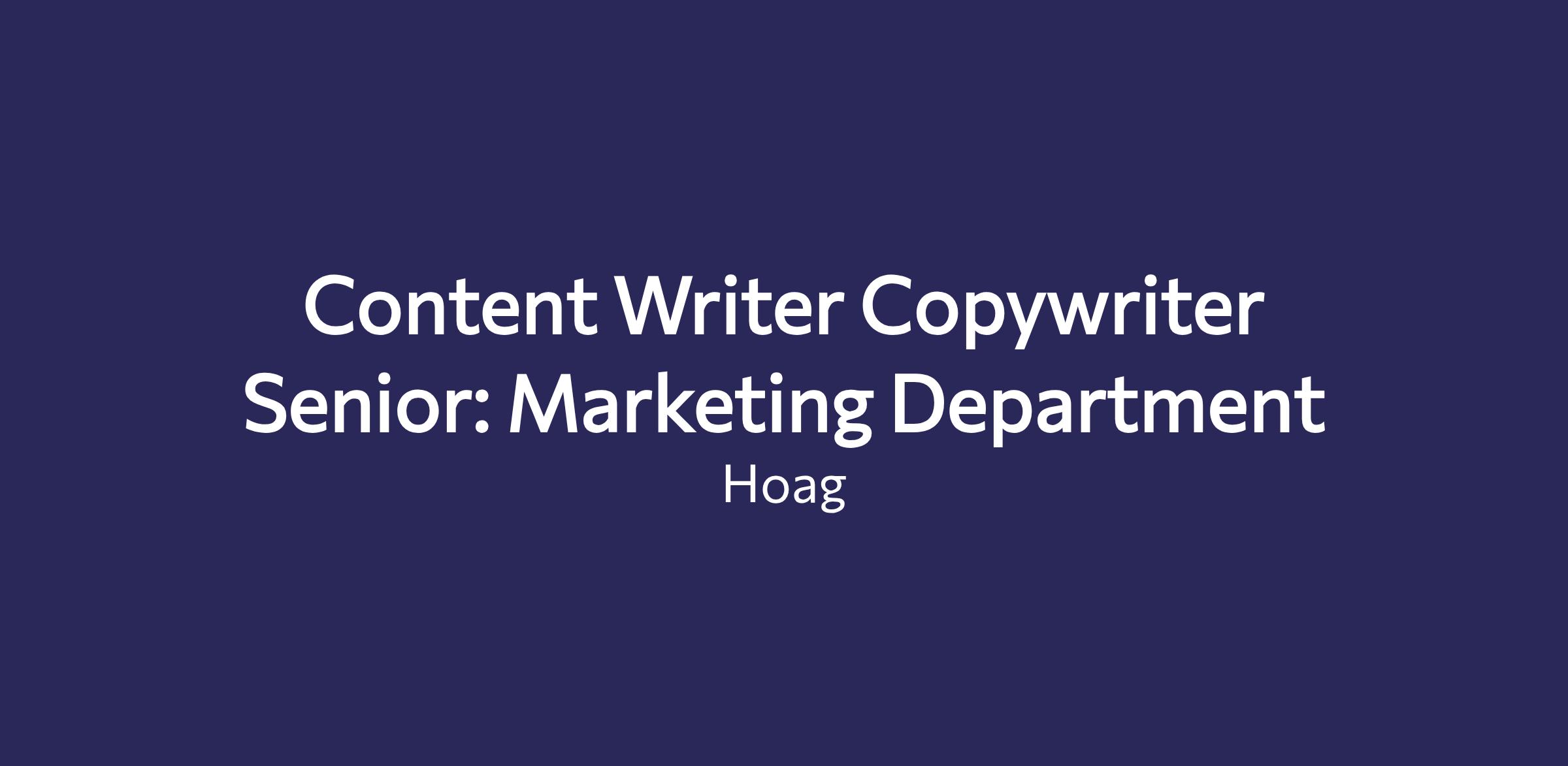 The Senior Content Writer-Copywriter plays a key role in developing high-quality and engaging content that educates, informs, and inspires our target audience. The Sr Content Writer-Copywriter’s work will enhance brand reputation, establish thought leadership, and drive loyal readership and Hoag community engagement.