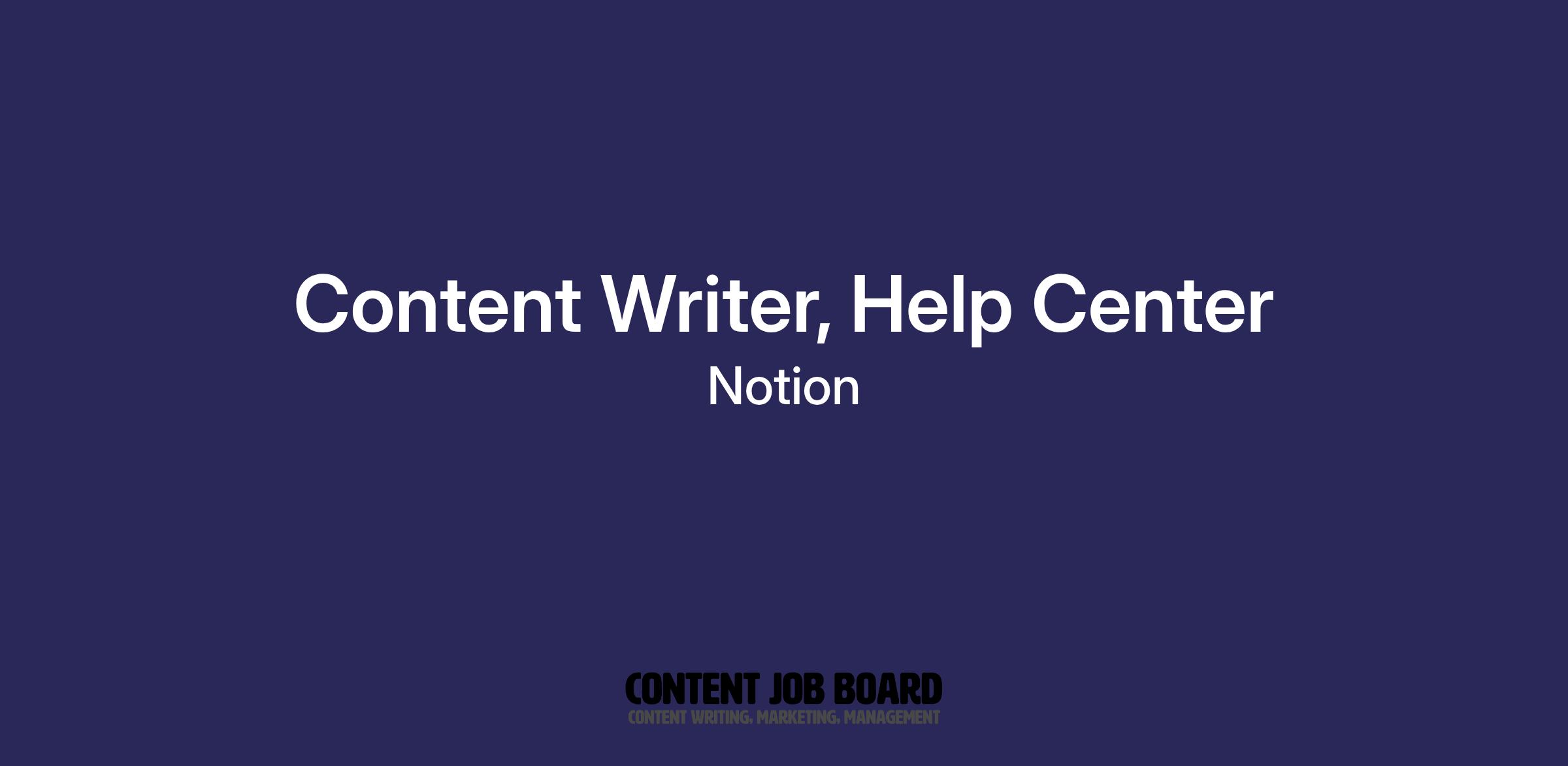 Content Writer, Help Center