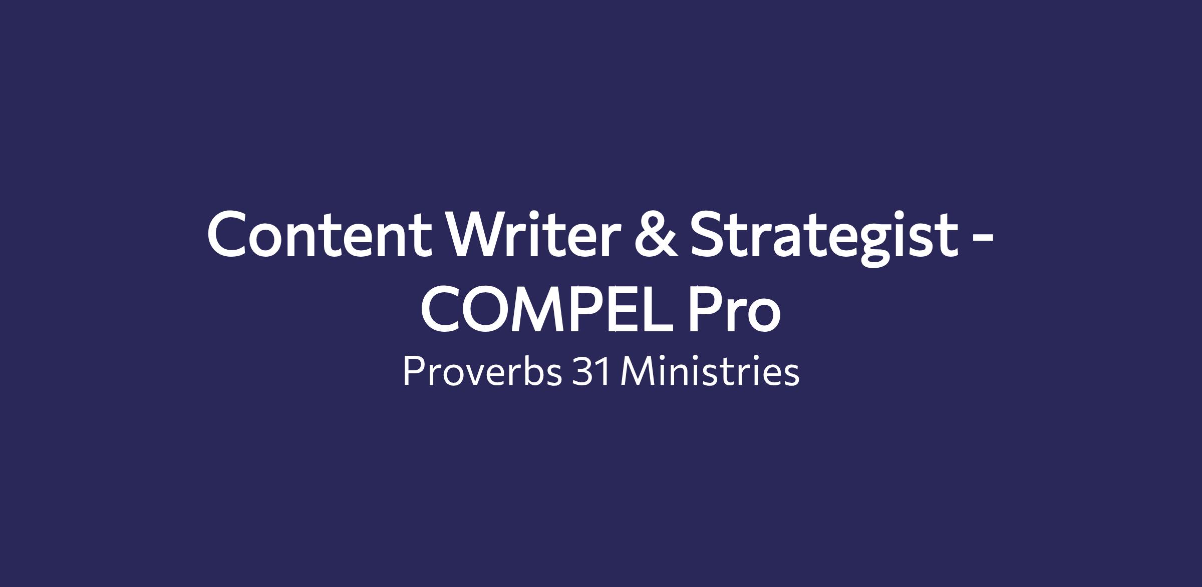 This position requires both creative excellence and strategic thinking to ensure all written member content is cohesive, on-brand, and aligned with the larger strategy and goals of COMPEL Pro and Proverbs 31 Ministries.
