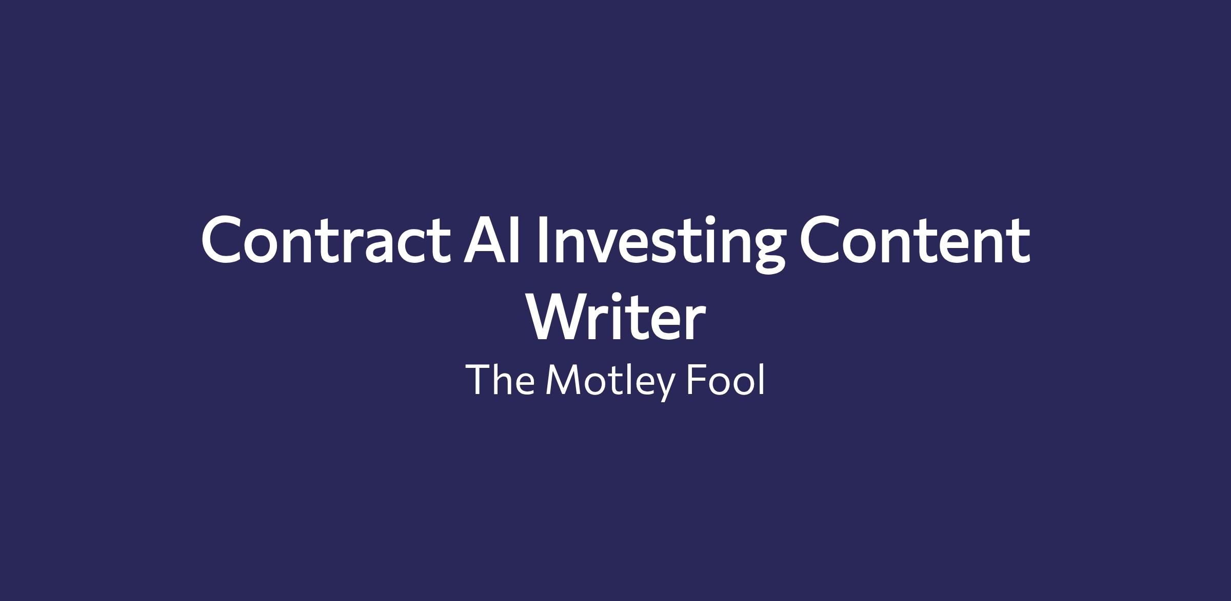 The Motley Fool is looking for a highly skilled AI-assisted financial content writer. This role will be on a contract basis and we are looking for someone who can commit a minimum of 15 hours per week.