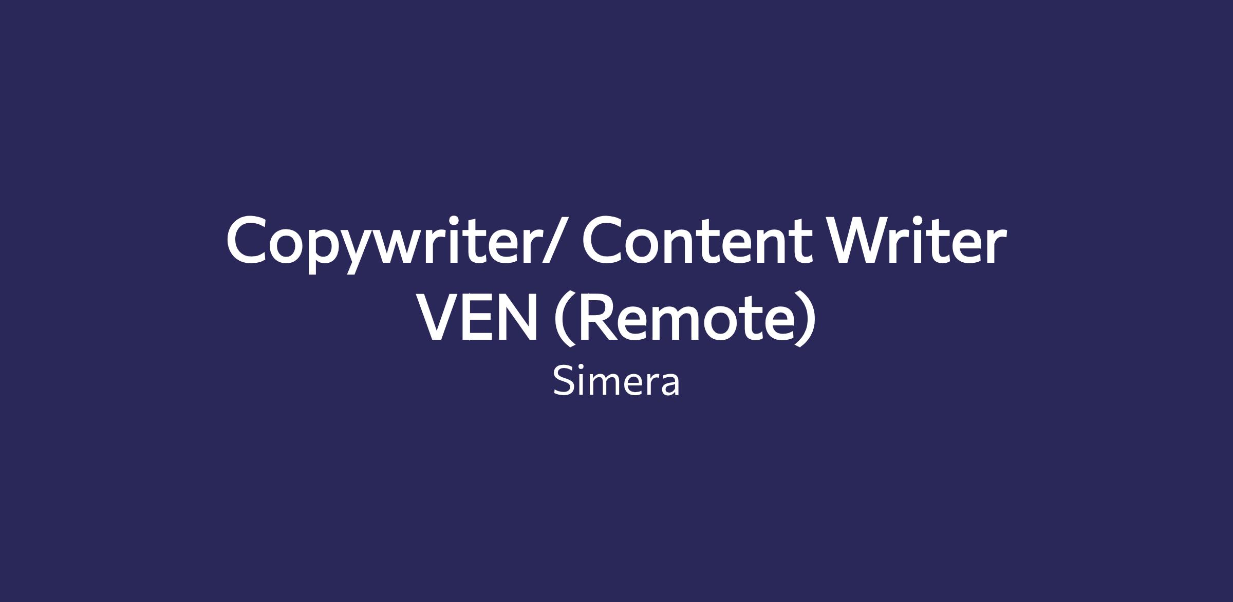 Copywriter/ Content Writer VEN (Remote)