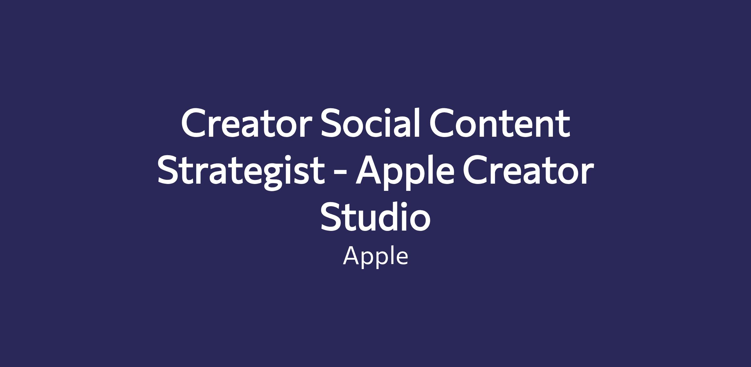 The Creator Social Content Strategist is responsible for shaping and executing creator-led social content strategies in support of Creator Studio and select Apple Services initiatives. This role focuses on developing social-first approaches, sourcing and collaborating with creators, and delivering platform-native content that drives engagement, relevance, and cultural resonance across social channels.