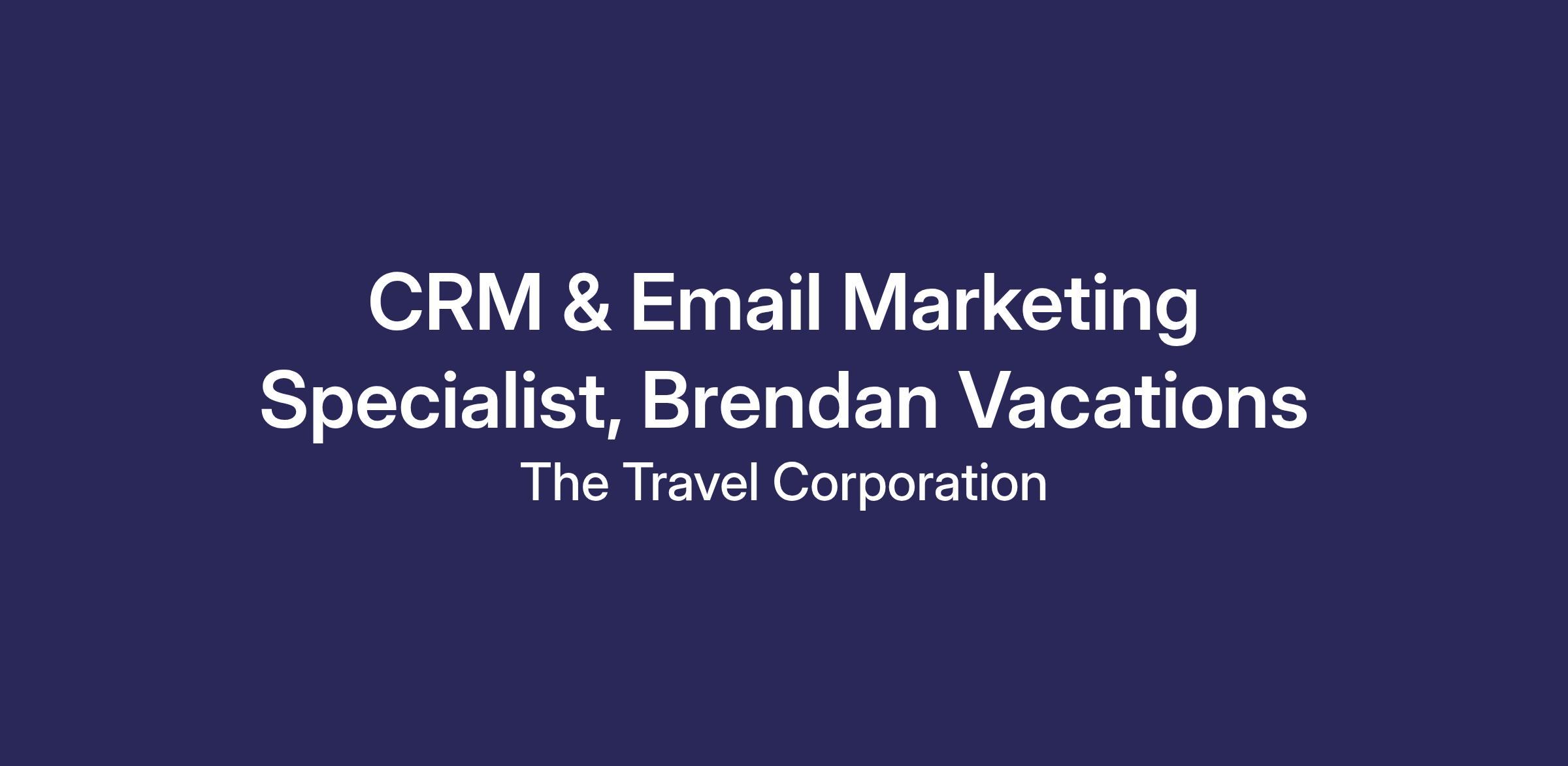 The CRM & Email Marketing Specialist for Brendan Vacations will play a key role in nurturing customer relationships and driving engagement through personalized, data-driven email and CRM campaigns. This role supports the strategy, execution, and optimization of customer journeys — inspiring travelers to discover Ireland and Scotland while maximizing conversion, loyalty, and repeat travel.