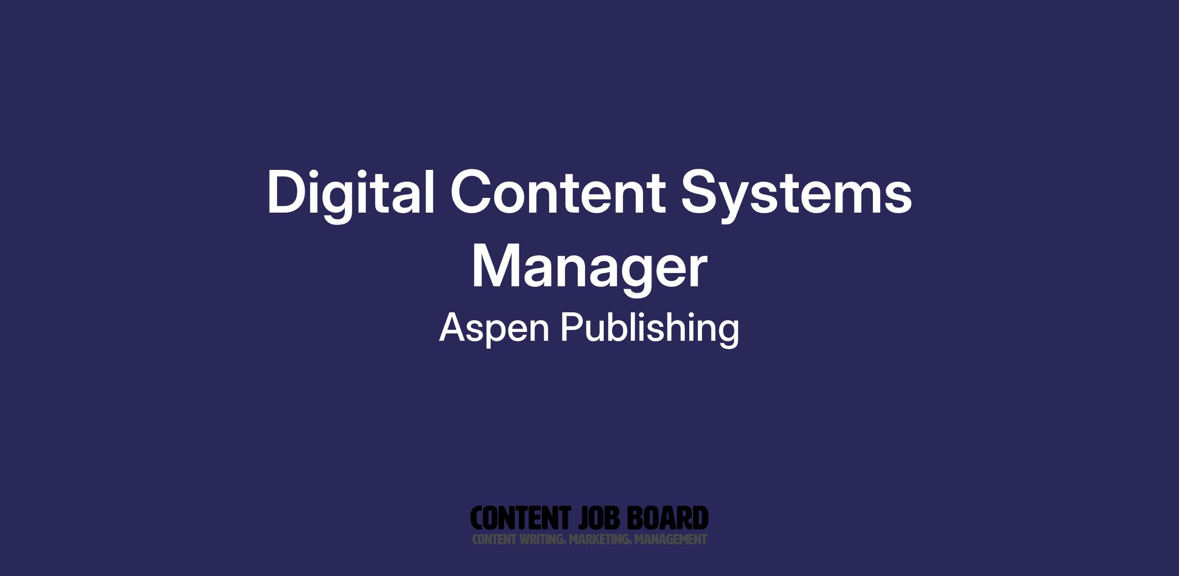 Aspen Publishing is seeking a Digital Content Systems Manager to be a part of a growing company. This role is open to Boston-based candidates to work in our Burlington, MA office on a hybrid office/work-from-home schedule. This role will be instrumental in managing vendor relationships, internal consulting workflows, and cross-functional solutions engineering for editorial and metadata systems. We are looking for a Digital Content Systems Managerwho can take our digital products to the next level—is that you?