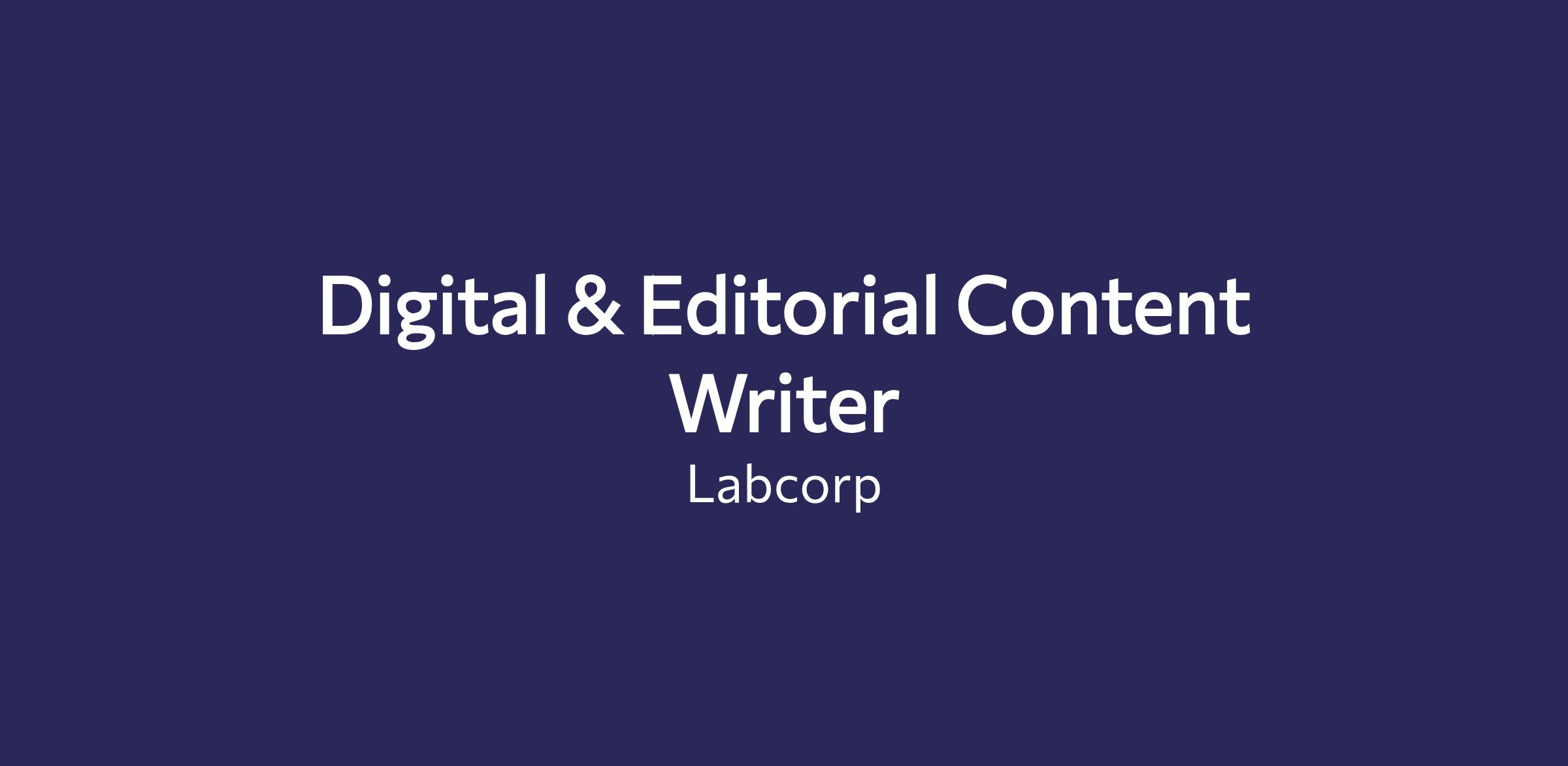 Labcorp is seeking a remote Digital & Editorial Content Writer to join our team!