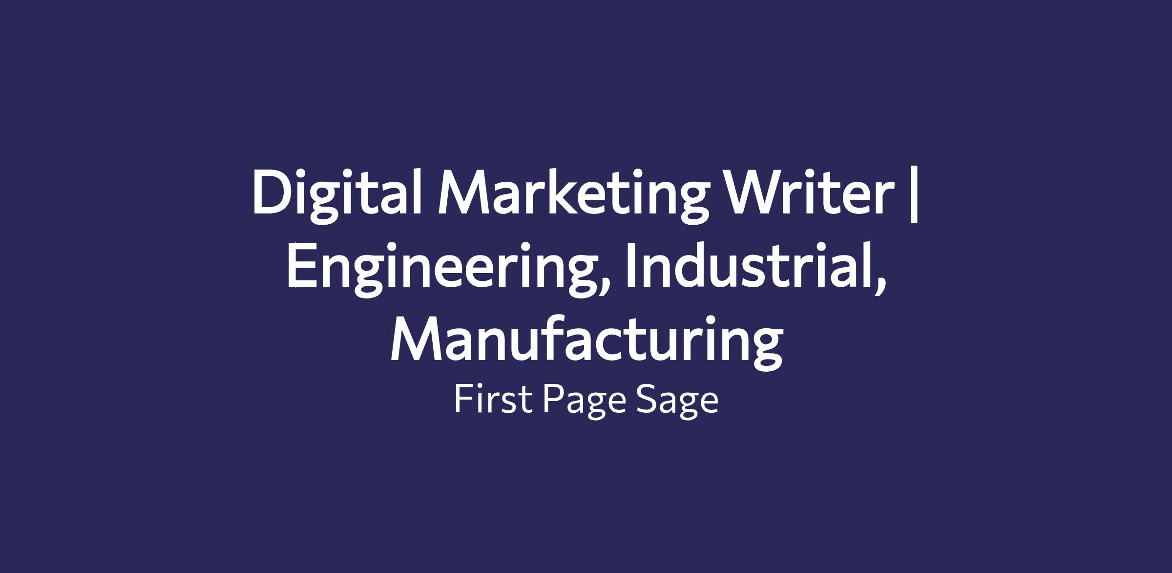 We are seeking a B2B Writer with broad experience in writing and editing content related to engineering, industrial, manufacturing, and technology. Specific fields in these areas include, but are not limited to, electronic, mechanical, and software engineering, product design and manufacturing, and industrial services. An understanding of technology, including cybersecurity and IT management, is also desirable. You must be able to turn complex subjects into thought leadership articles that appeal to the general public and industry leaders. You will create branded content with clear messaging tailored to our clients' target audiences. You must be a self-motivated, deadline-driven team player who maintains high standards for excellent content.