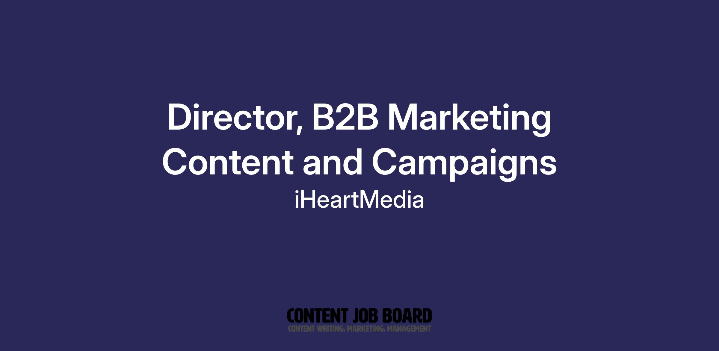 iHeartMedia is the leading media and entertainment company and the largest podcast publisher, creating the biggest live events and conversations in the nation for fans and advertisers. The B2B Marketing Team tells our story to the advertising community, leading iHeartMedia go-to-market, sales enablement, B2B events and B2B content. Sitting at the center of the organization, our goal is to build messaging, materials and campaigns that elevate the iHeartMedia brand and drive results. As Director, B2B Marketing Content and Campaigns, you’ll lead iHeartMedia content marketing reaching agencies, national brands and SMBs. Responsible for planning and execution of multi-channel content marketing efforts, this role is a terrific opportunity to launch and manage high profile B2B content initiatives at iHeartMedia. If you’re looking for the chance to build and execute an industry-leading content marketing discipline, this is the role for you!