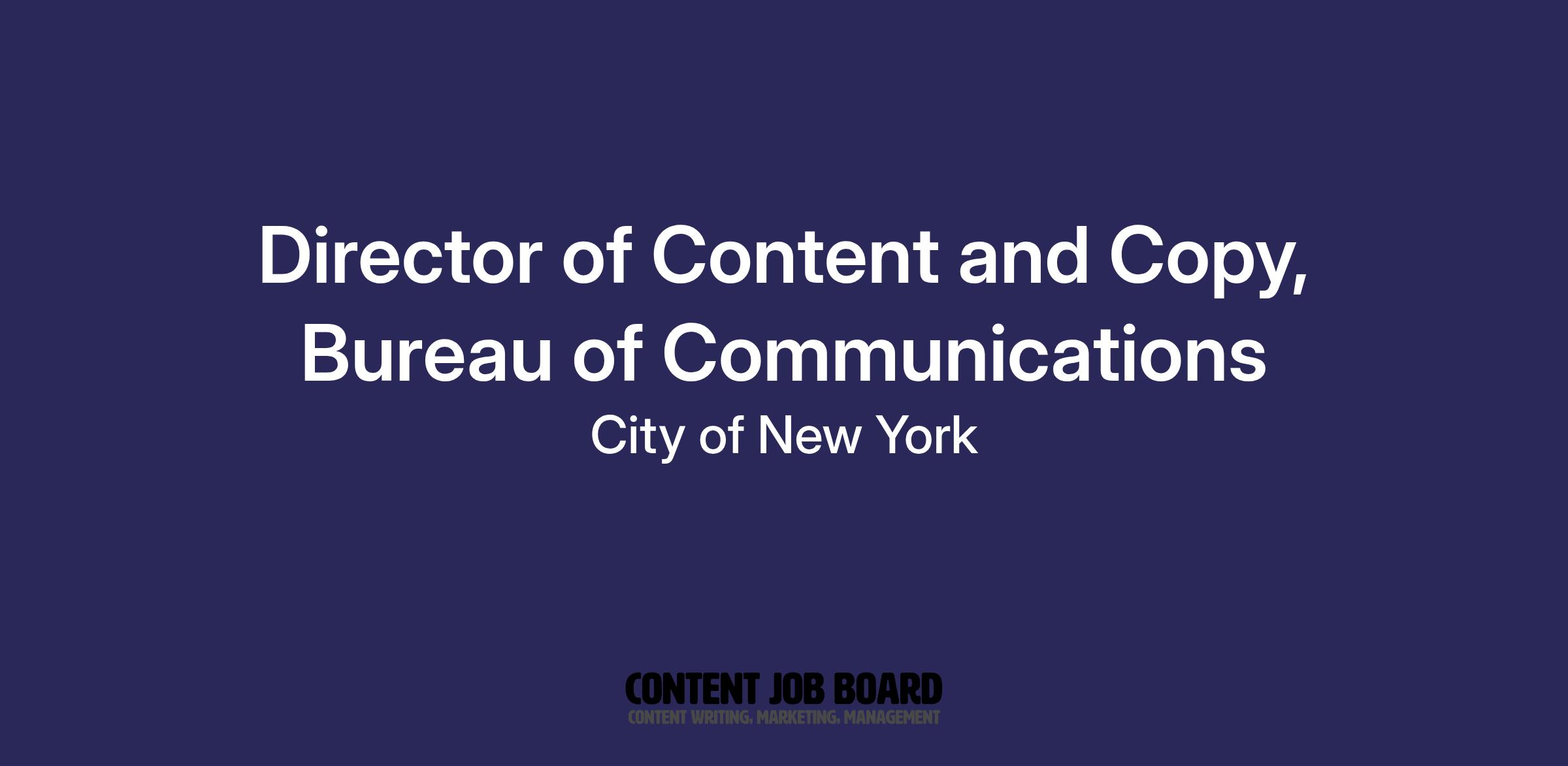 We are seeking to hire a Director of Content and Copy. Reporting to the Executive Director of Creative Communications, the Director of Content and Copy is responsible for the creation and development of program-specific and/or Health Department-wide written communications projects, in collaboration with the larger Creative Communications team. The Director oversees the day-to-day operations of the Content team, workflow, and management of staff.