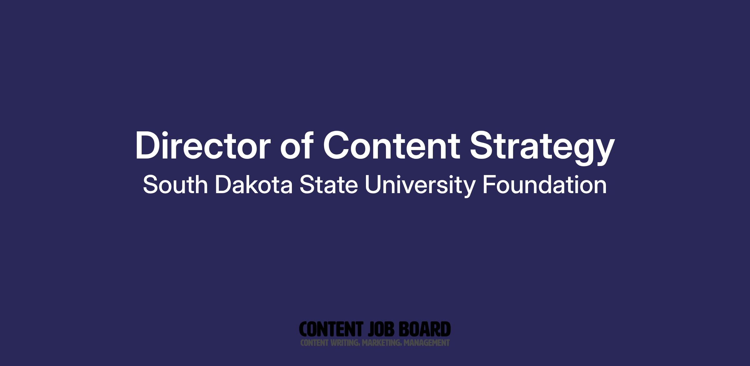 Position Summary The Director of Content Strategy develops and implements a strategic plan for a comprehensive and collaborative engagement and fundraising program in support of South Dakota State University. This role executes a multichannel strategy that includes video content, email communications, digital campaigns, social fundraising initiatives, and the student engagement program. In addition to advancing loyalty giving, the position plays a key role in strengthening the organizational pipeline and enhancing alumni engagement. The Director provides leadership to a dynamic team that supports the goals of the department. Essential Duties and Responsibilities Strategic Content Management and Leadership