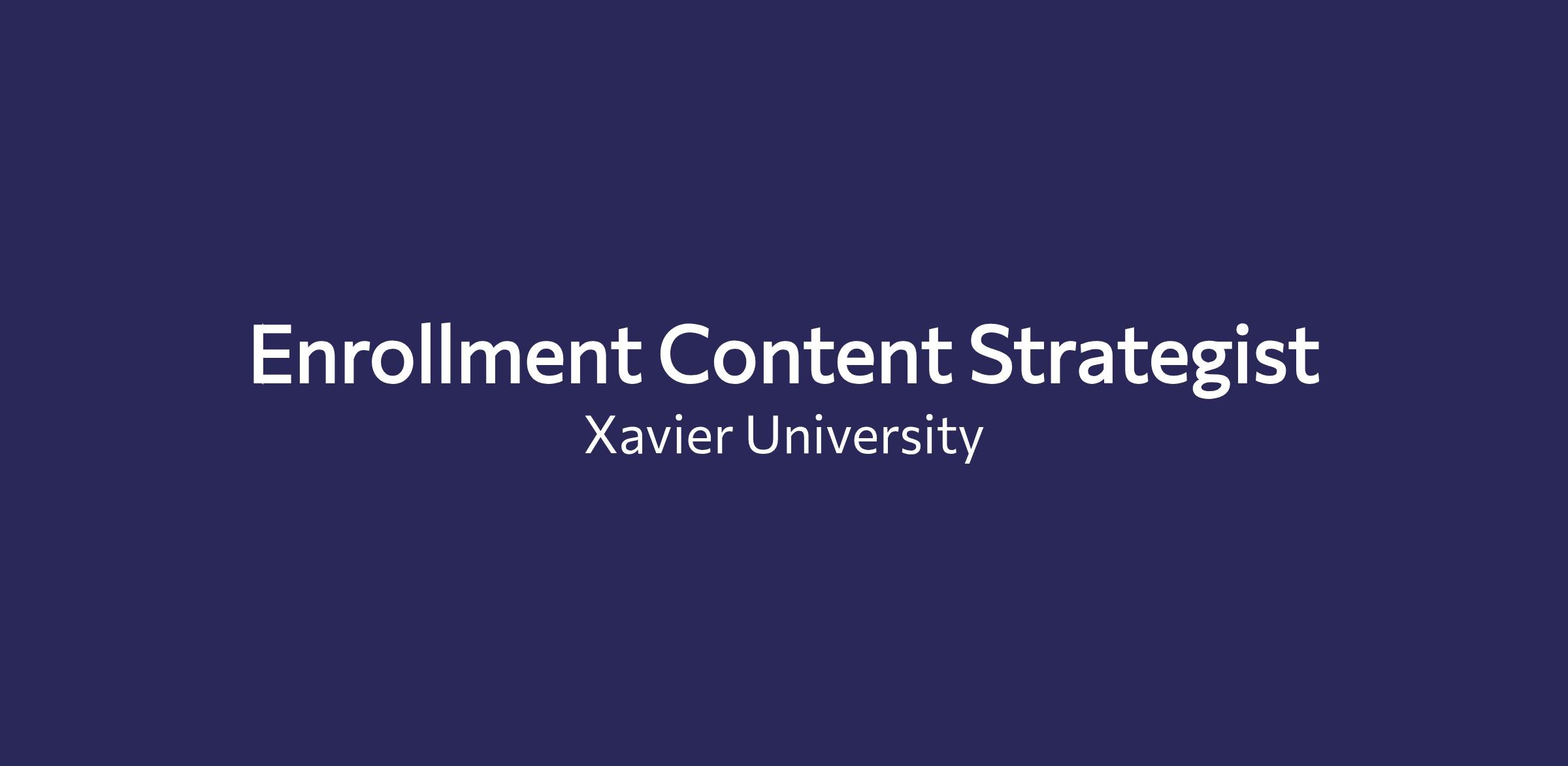 JOB OVERVIEW: Xavier University is seeking an Enrollment Content Strategist who provides centralized communications and marketing support in the Division of Strategic Enrollment Management. This position is responsible for providing leadership and support on all enrollment marketing planning and implementation throughout the full recruitment funnel including prospect communication, application generation, yield efforts, student onboarding and melt prevention. This position coordinates with Xavier staff and faculty to execute their plan through concise, creative, and engaging written communication.