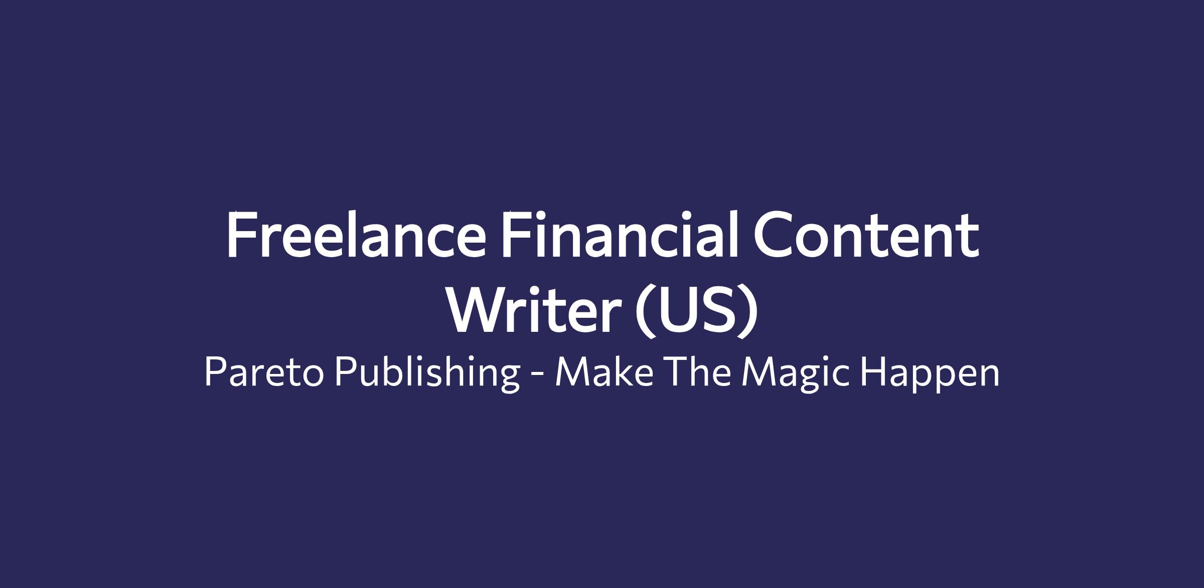 Pareto Publishing is looking for a freelance Financial Content Writer to support our brands focused on financial content, with a strong emphasis on small caps