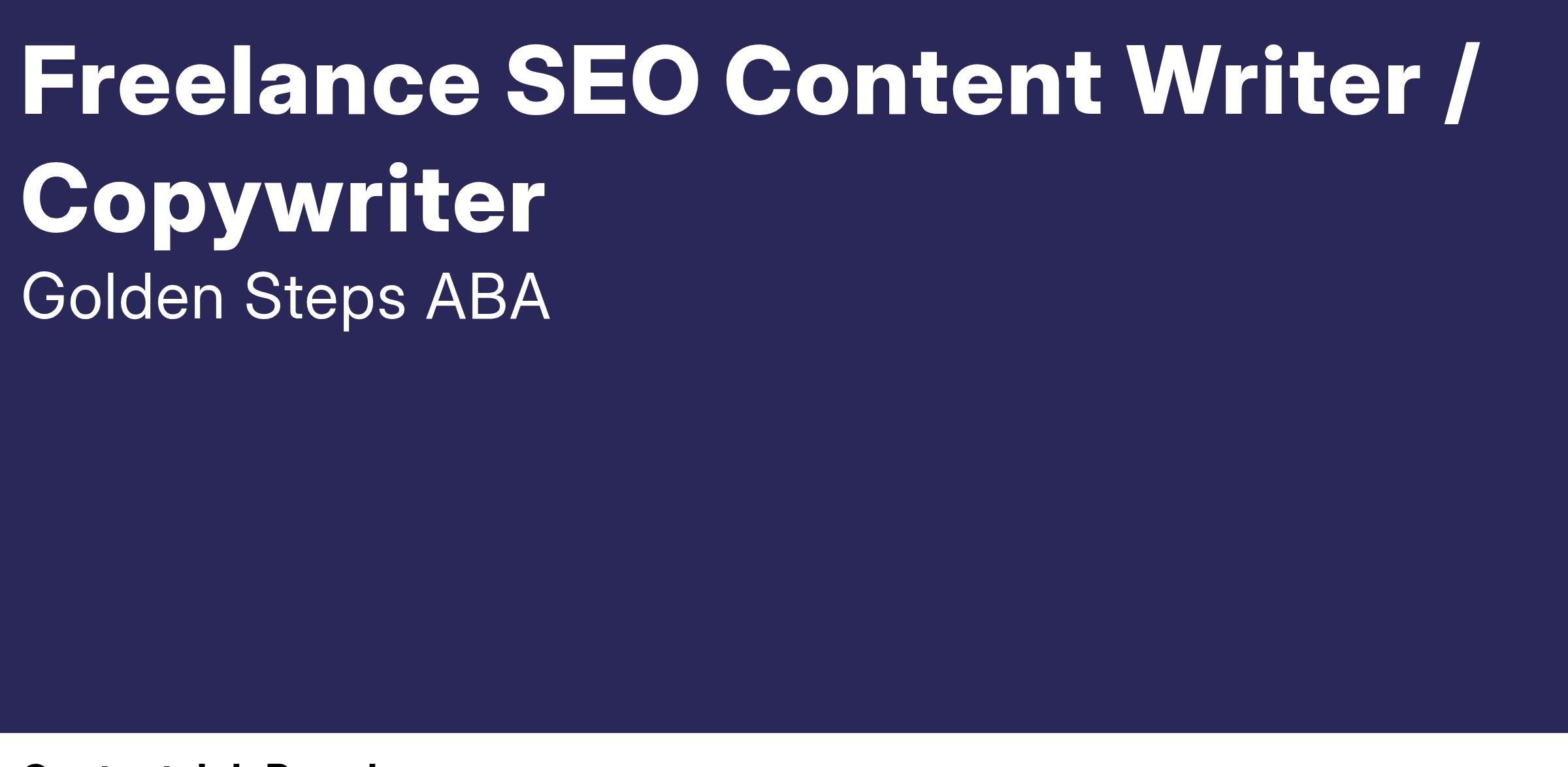Golden Steps ABA is looking for a top-notch content creator who wants to deliver exceptional, SEO-friendly website content that is well researched and said with our voice.