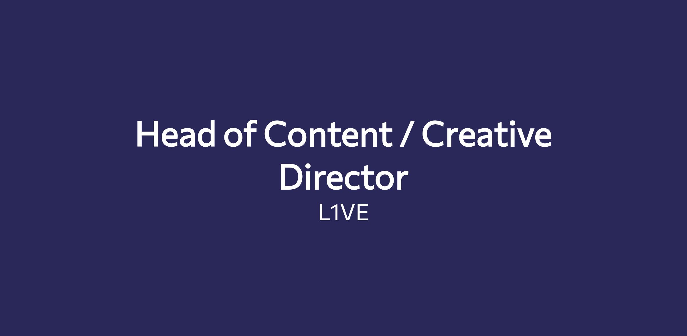 To strengthen our team, we are looking for a Head of Content / Creative Director who sets the creative vision and content strategy that bring moments to L1VE across L1VE immersive experiences, episodic and linear series, and emerging formats. This role ensures every experience is emotionally compelling, editorially intentional, and worthy of presence, whether it unfolds in real time or over time.