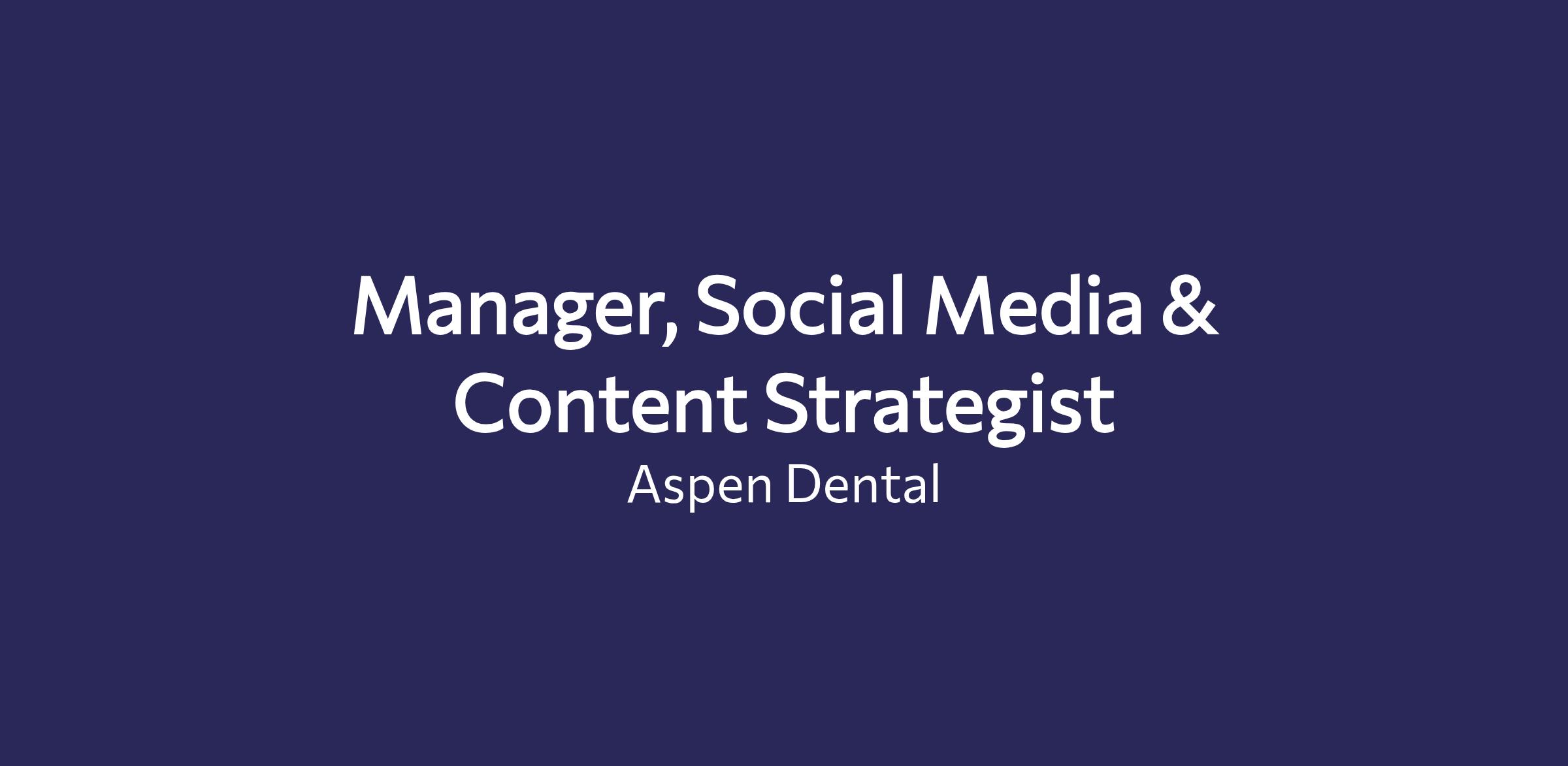 The Aspen Group (TAG) is looking for a Manager, Social Media & Content Strategist to play a key role in shaping how Aspen Dental shows up across social platforms –from ideation and content creation to managing analytics and performance.