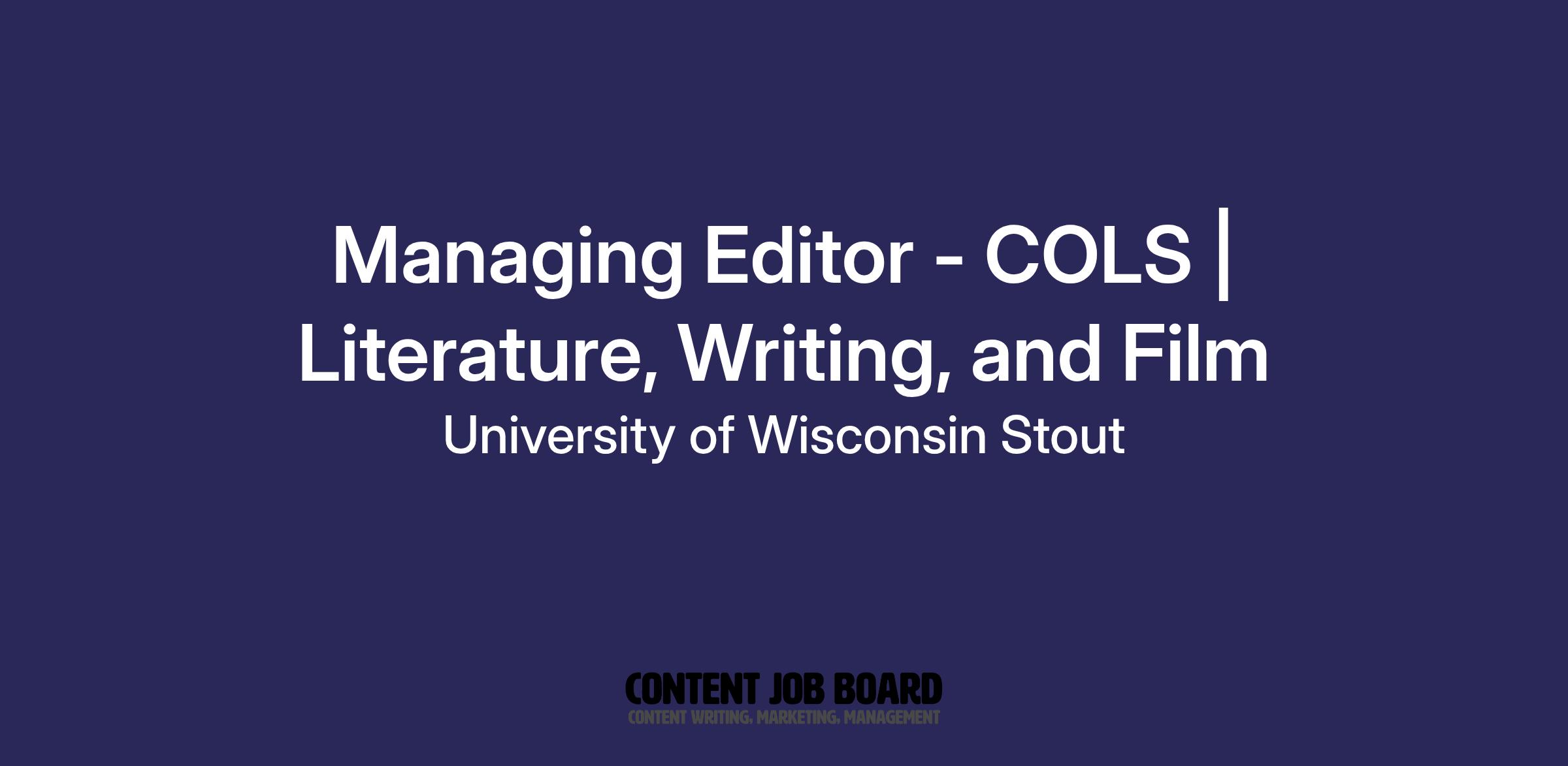 The Department of Literature, Writing, and Film in the College of Letters and Sciences at the University of Wisconsin-Whitewater seeks an academic staff position to serve as the managing editor of the department’s national literary journal, Either/Or. This is a twelve-month position that includes teaching responsibilities in first-year English composition and/or creative writing courses.