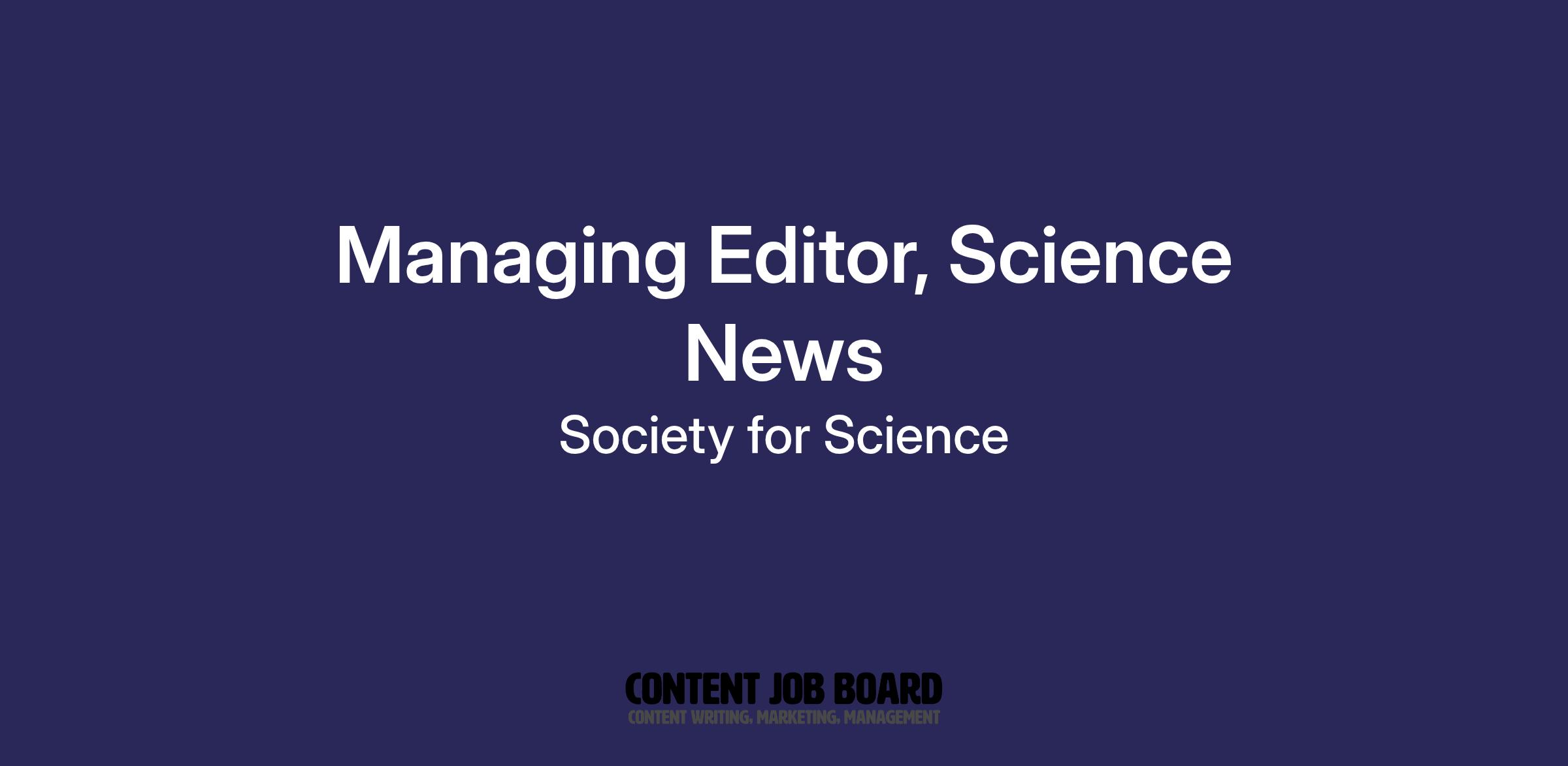 Science News Media Group is looking for an innovative managing editor to lead our award-winning flagship print magazine, Science News, and advance our mission of connecting the public with accurate, engaging news of the latest in science, medicine and technology -- a mission that is more important than ever before.