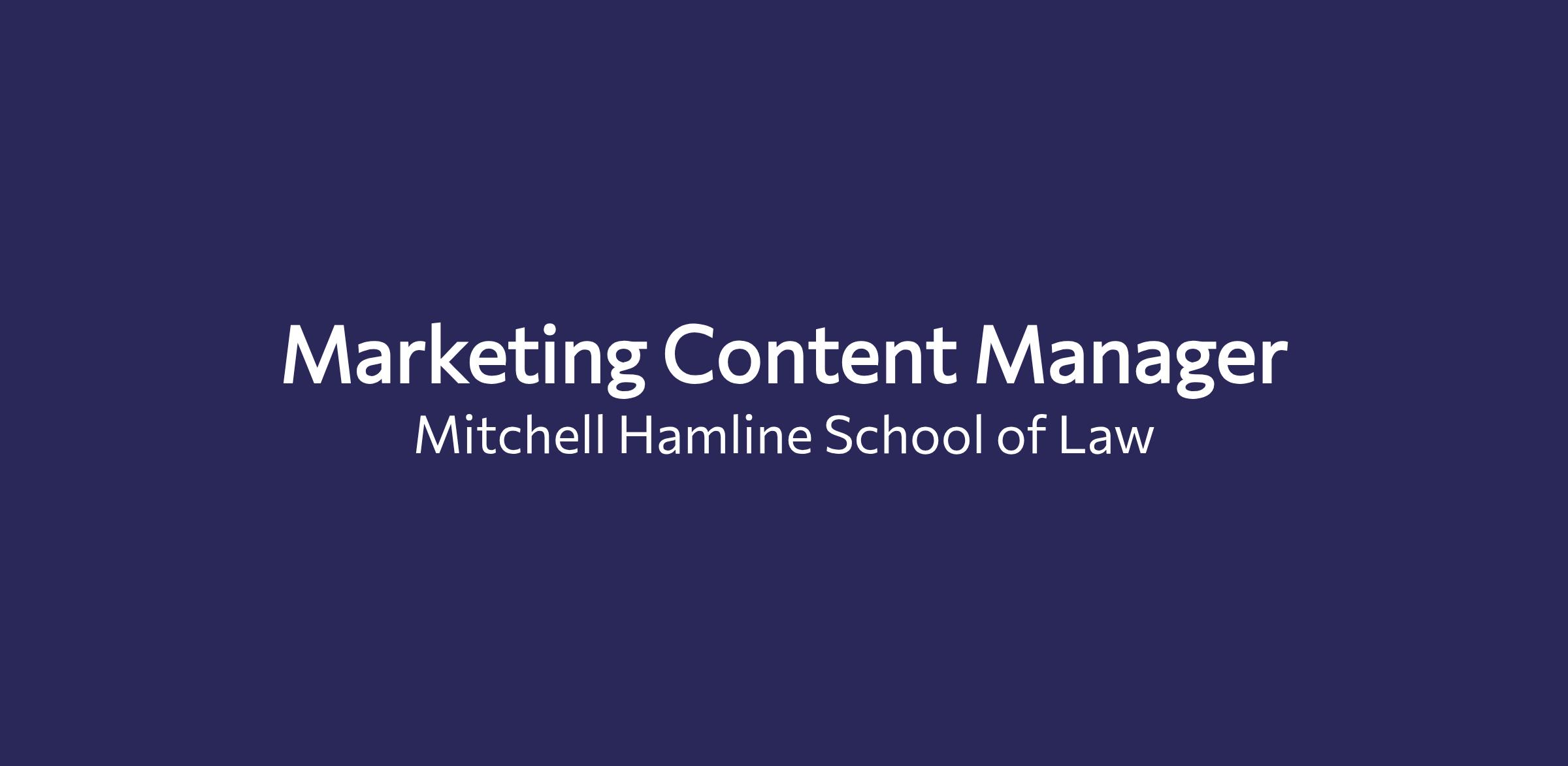 Mitchell Hamline is seeking a strategic Marketing Content Manager to oversee the development, management, and optimization of digital content across our communication channels including website, social media, advertisements, and internal and external email campaigns. The successful candidate will play a key role in advancing the law school's brand, engaging diverse audiences (prospective students, current students, alumni, faculty, and external stakeholders), and drive measurable outcomes through compelling content and data-driven insights. This position requires creative storytelling through the written word, photography and videography to enhance the law school's digital presence. Reporting to the Chief Marketing Officer, the role involves working closely with all members of the marketing team.