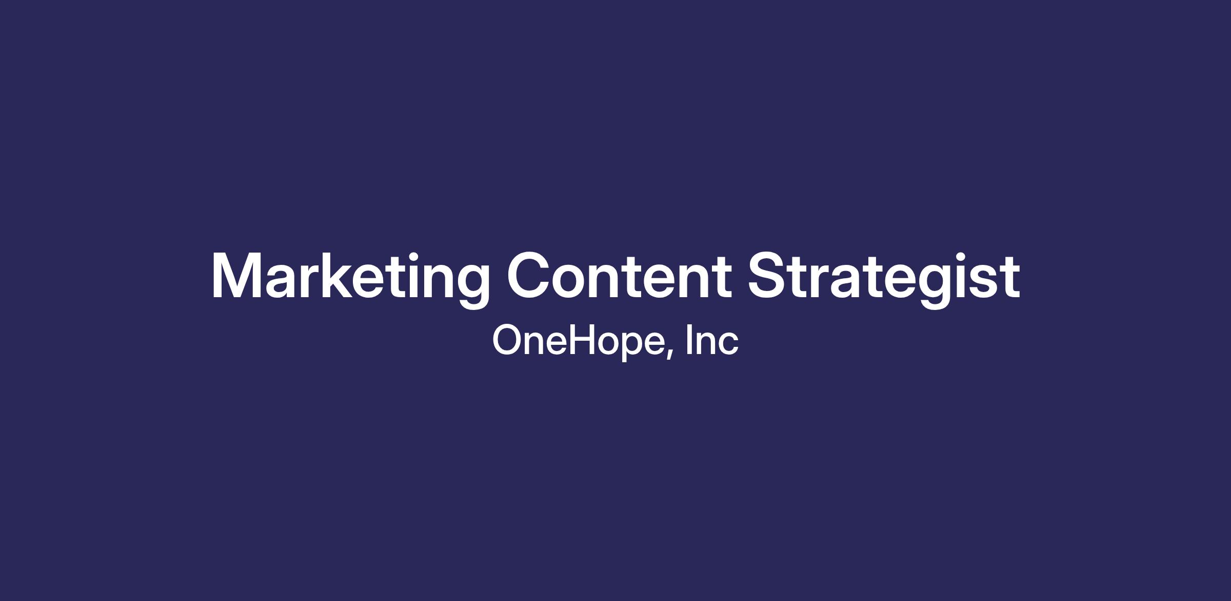 OneHope is seeking an experienced Marketing Content Strategist who can seamlessly blend strategic marketing planning with powerful storytelling to amplify our brand, enhance advocacy, and strengthen partner engagement. If you're both a marketing strategist and an exceptional content creator, we’d love to hear from you!