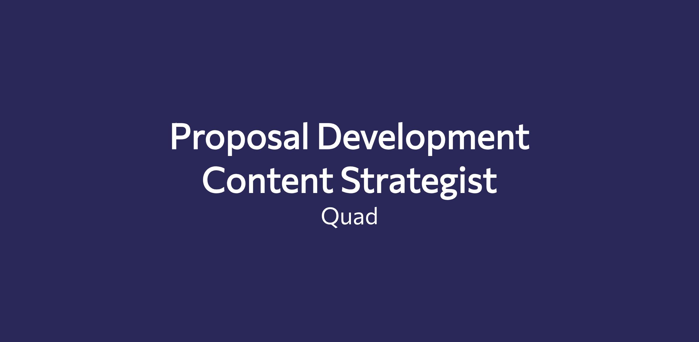The primary role of the Proposal Development Content Strategist is to serve as a skilled, dedicated resource for the Proposal Development Team, specializing in graphic design, content formatting, copywriting, and data visualization to support Quad’s responses to client Requests for Proposals (RFP) and Requests for Information (RFI). This role combines creative design and compelling written communication to deliver captivating proposals that showcase Quad’s solutions while maintaining consistency with Quad’s overall brand voice and standards.