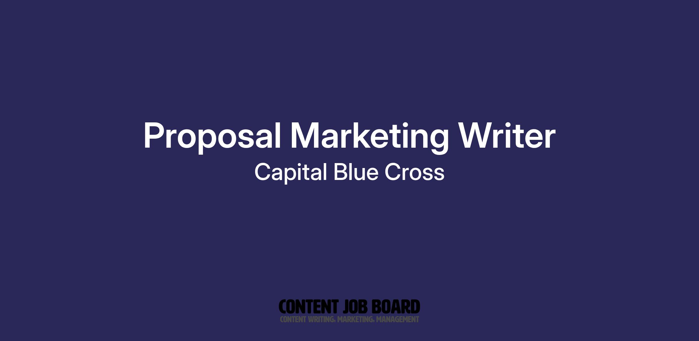 The Proposal Marketing Writer is an integral member of the Sales Communication Strategy team, who drives the development of compelling, persuasive, and timely proposals and other sales communications that help to position Capital competitively in market. This role collaborates closely with Commercial Group Sales, fellow marketers, and many subject-matter experts to develop high-impact proposals, presentations, and other strategic communications that clearly articulate our value and help us stand out with customers. The Proposal Marketing Writer plays a key role in shaping Capital's voice and ensures that every customer touchpoint reflects our promise to be the most trusted health plan by going the extra mile for our customers.