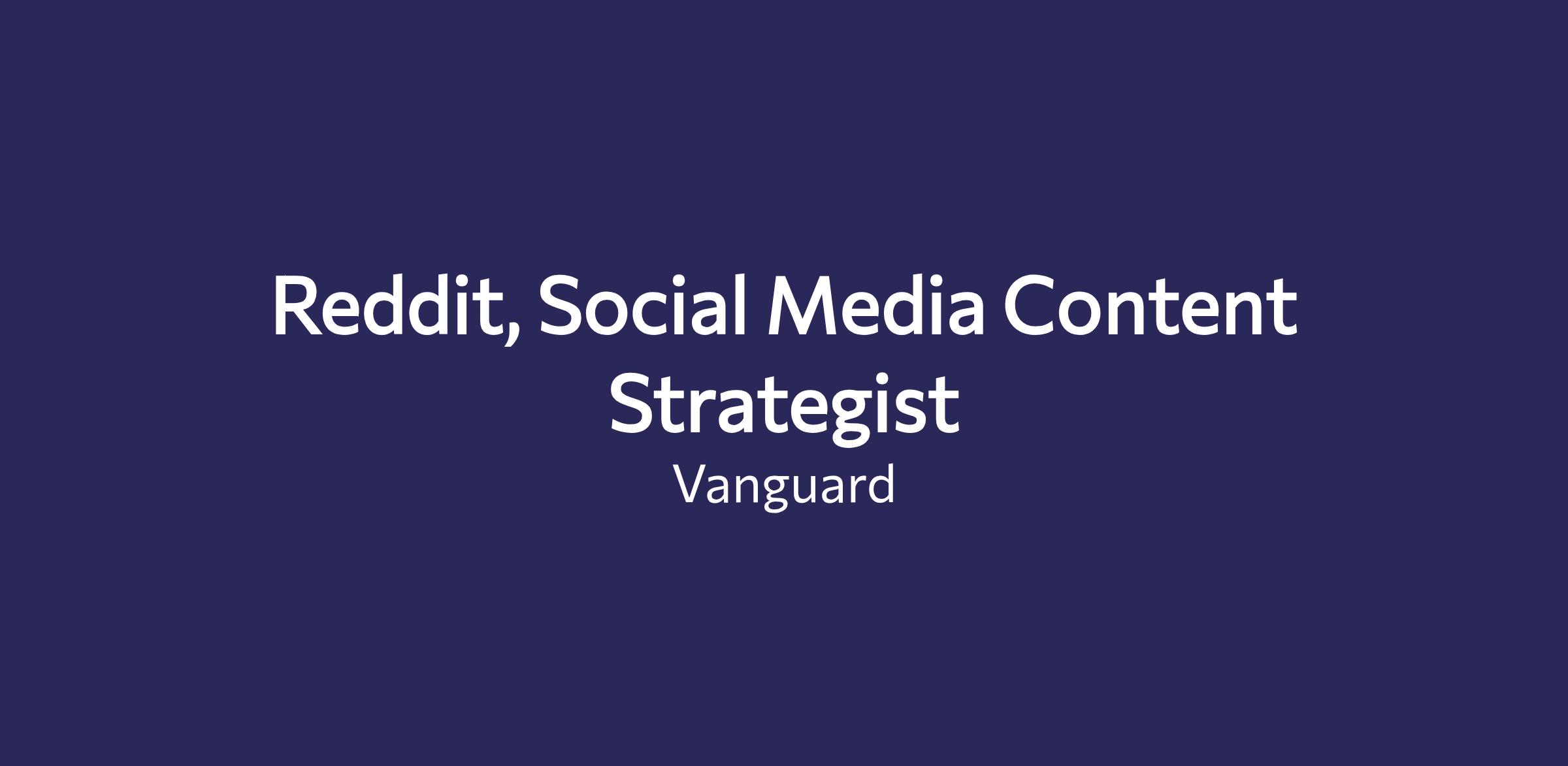At Vanguard, we’re not just shaping conversations—we’re shaping the future of investing. As a Social Media Content Strategist (Reddit), you’ll help bring Vanguard’s voice to life through thoughtful, compliant, community-first content. You’ll own day-to-day content development and execution that keeps our Reddit presence helpful, human, and consistent—while also identifying patterns and opportunities that improve quality, workflow efficiency, engagement, and risk-smart execution over time.