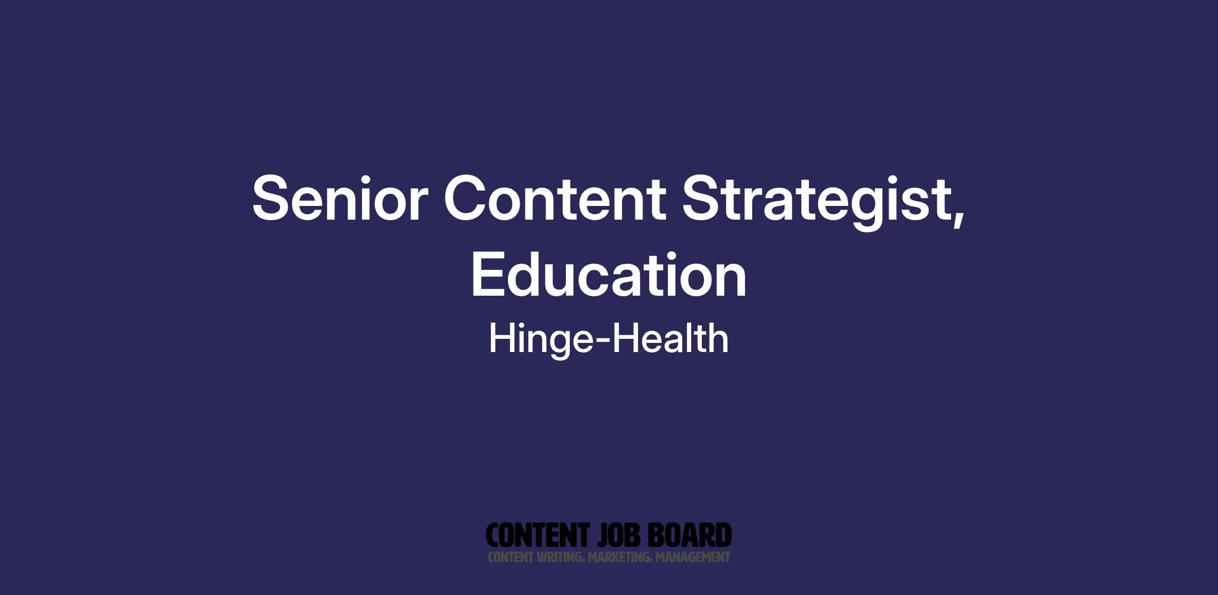 At Hinge Health, our mission is to help people reduce pain and reclaim their lives by providing musculoskeletal (MSK) care that is accessible, engaging, and effective. Education is at the core of what we do: when members understand their pain and learn how to manage it, they become empowered to embrace meaningful lifestyle changes. The Senior Education Content Strategist will play a key role in shaping the educational content that drives these outcomes, helping thousands of people every day. Reporting to the Director of Content and Education, you will set and execute content strategies across our digital products, website, and marketing channels, ensuring that our resources are not only medically authoritative, but inspiring and actionable.