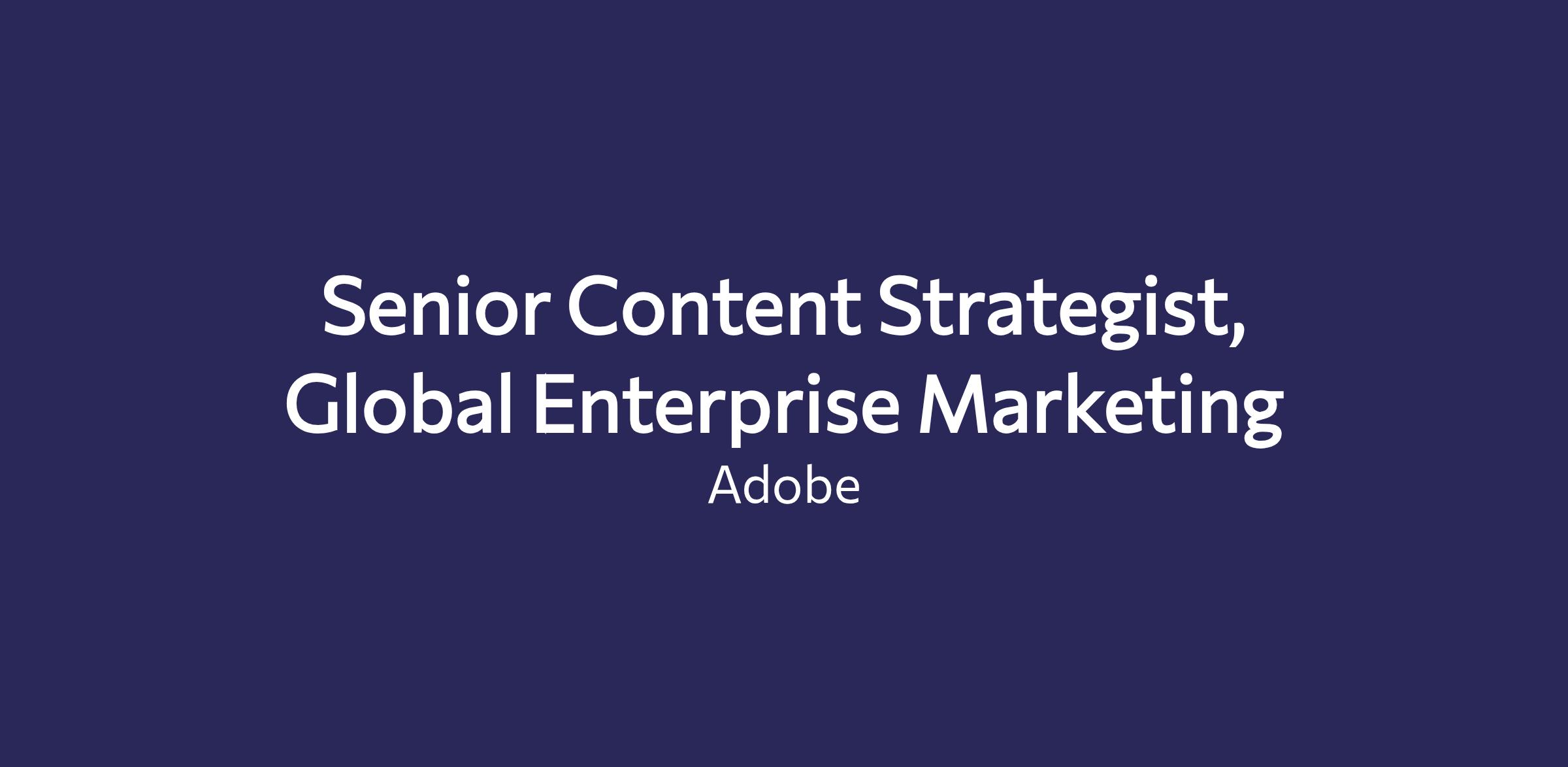 In the role of Senior Content Strategist for Global Enterprise Marketing, you will develop and guide the vision for customer-centered digital content that supports Adobe’s enterprise campaigns. This position is essential in crafting how Adobe’s message reaches and resonates worldwide. You will turn complex business priorities into compelling digital experiences that span channels and journey phases.