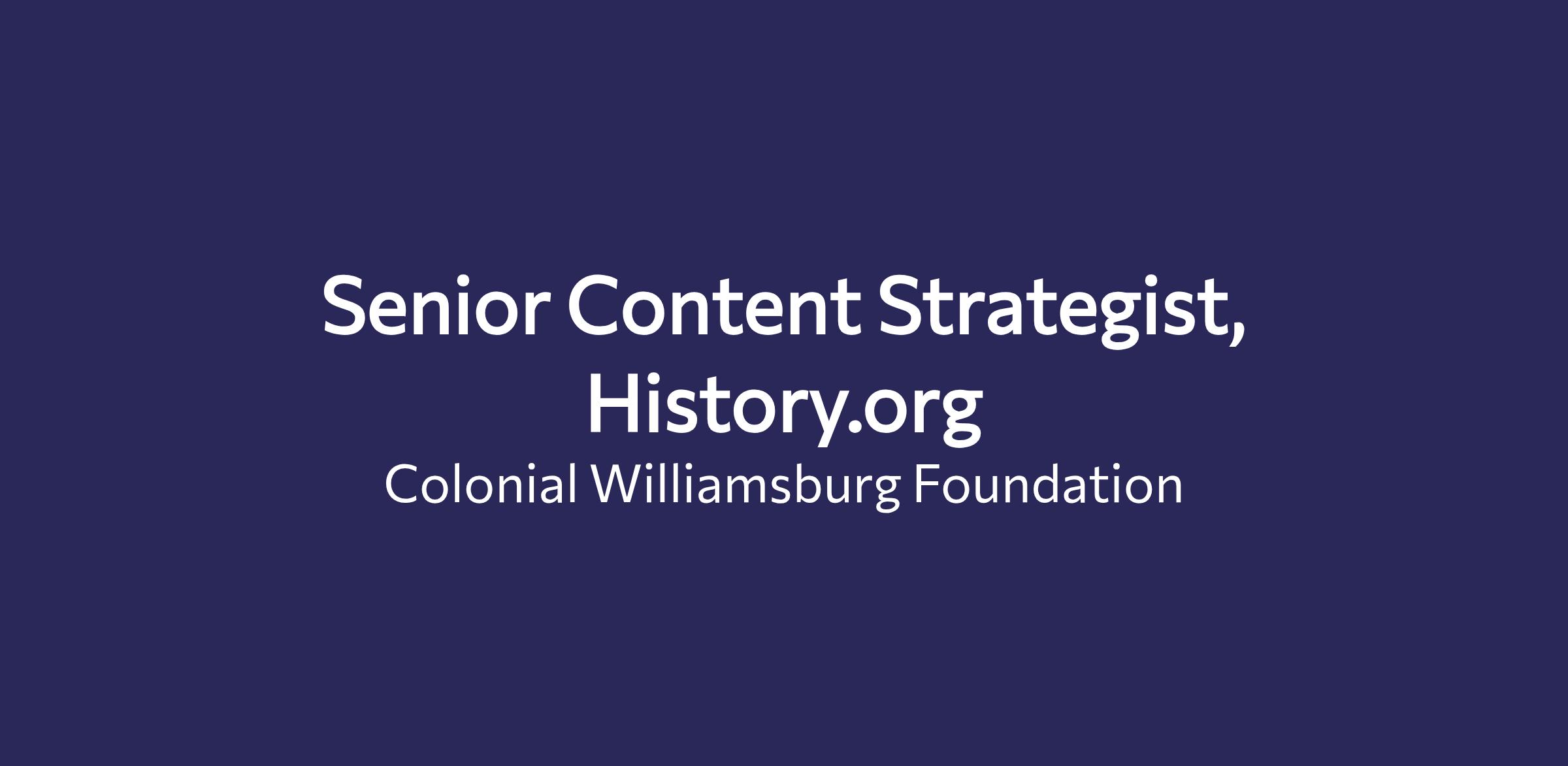 The Senior Content Strategist for history.org oversees and manages the development and production of high-quality, research-backed educational content for the history.org platform. This role collaborates with internal and external stakeholders to create engaging, accurate, and pedagogically innovative digital resources grounded in object-based inquiry. This position is crucial to ensure history.org's comprehensive, primary source-based teaching materials meet diverse K-12 learner needs, foster deep historical and civic understanding, and align with the Foundation’s strategic vision.