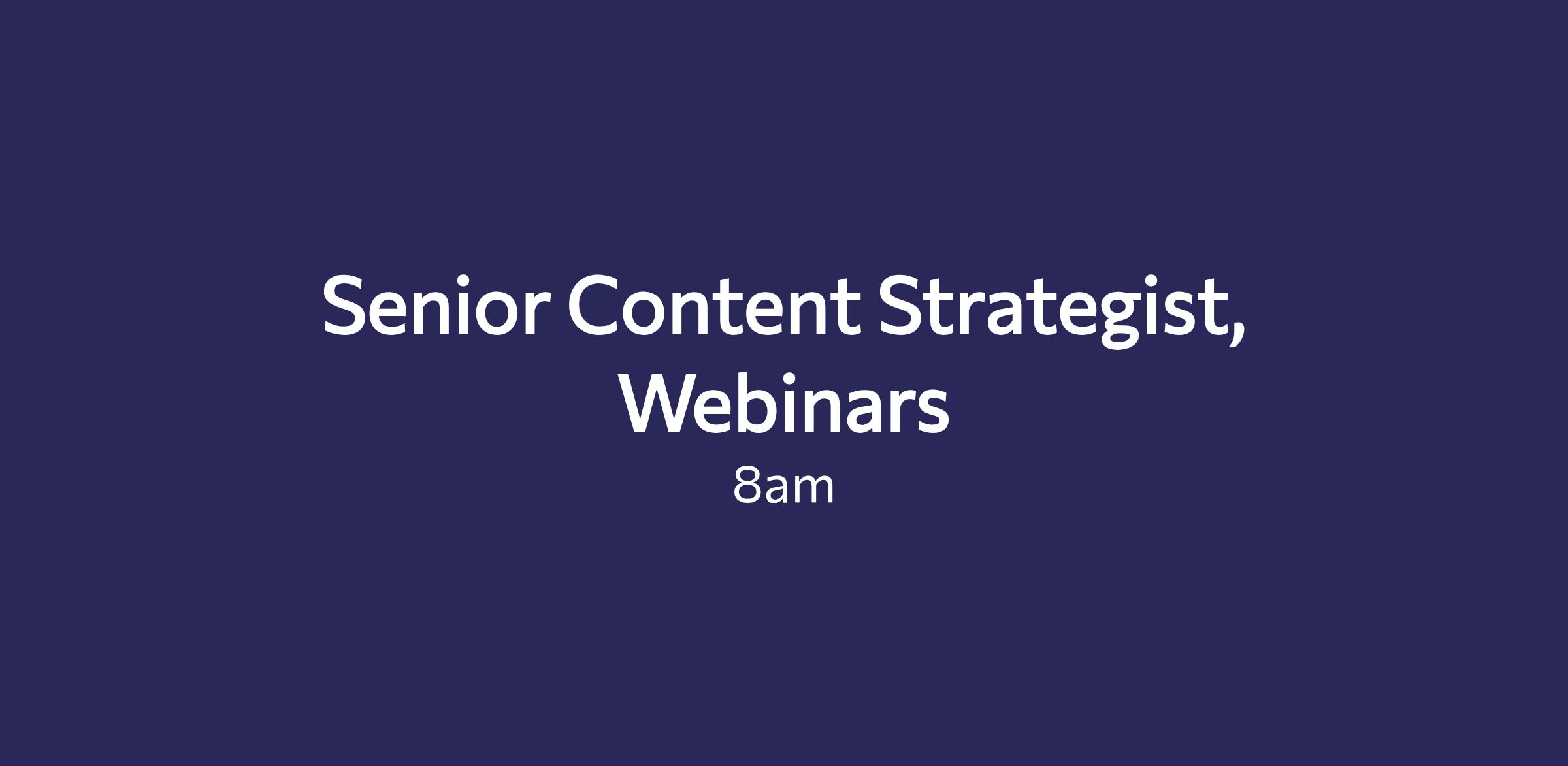 The Sr. Content Strategist for Webinars will be responsible for the successful planning, execution, and management of thought leadership, product, and customer webinars while supporting the Continuing Legal Education (CLE) division in the delivery of educational programs to legal professionals, nationwide. This role requires strong project management skills, comfort on hosting webinars, attention to detail, and the ability to collaborate cross-functionally to deliver high-quality online events that engage and inform our target audience.