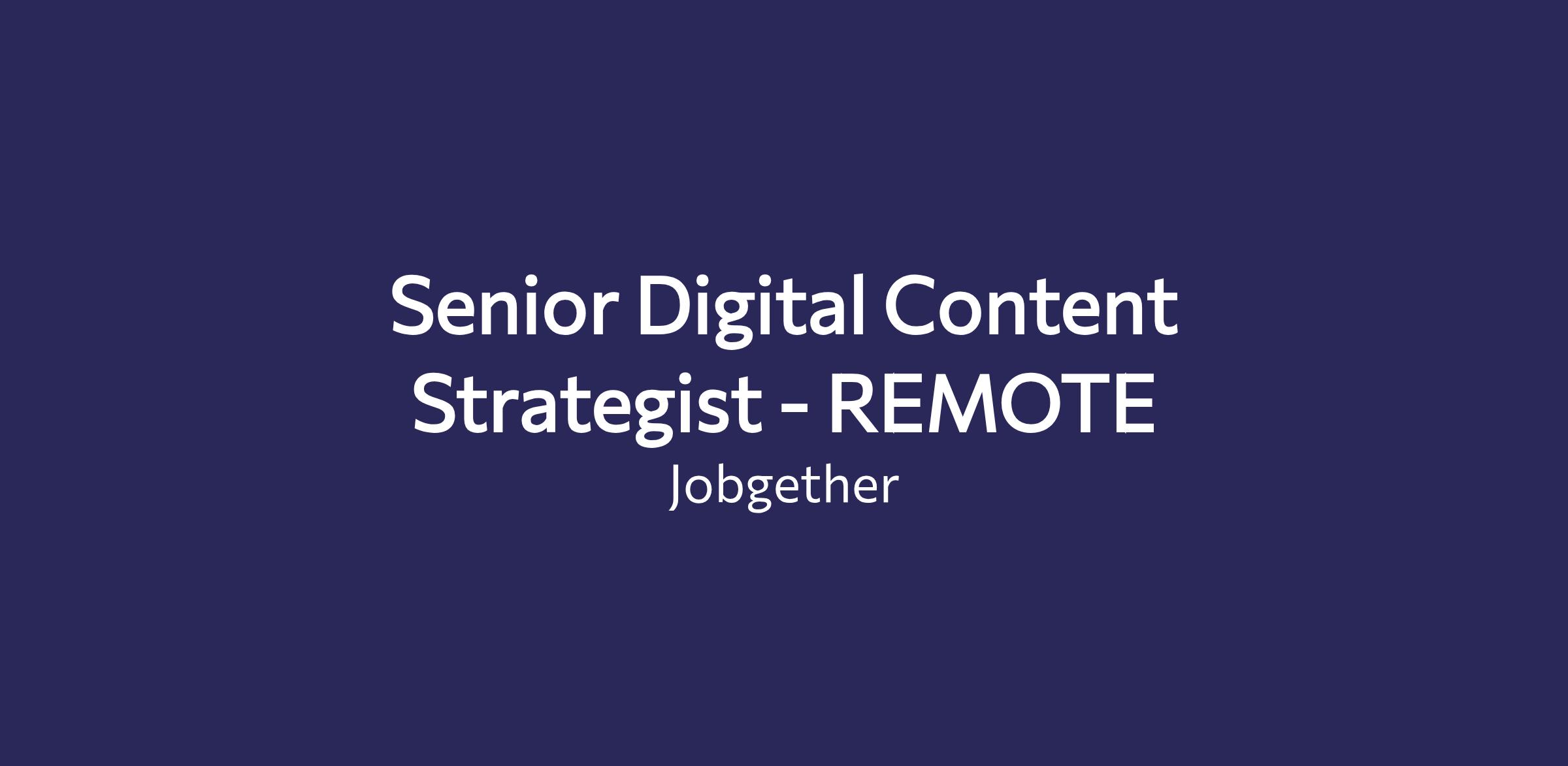 Senior Digital Content Strategist - REMOTE