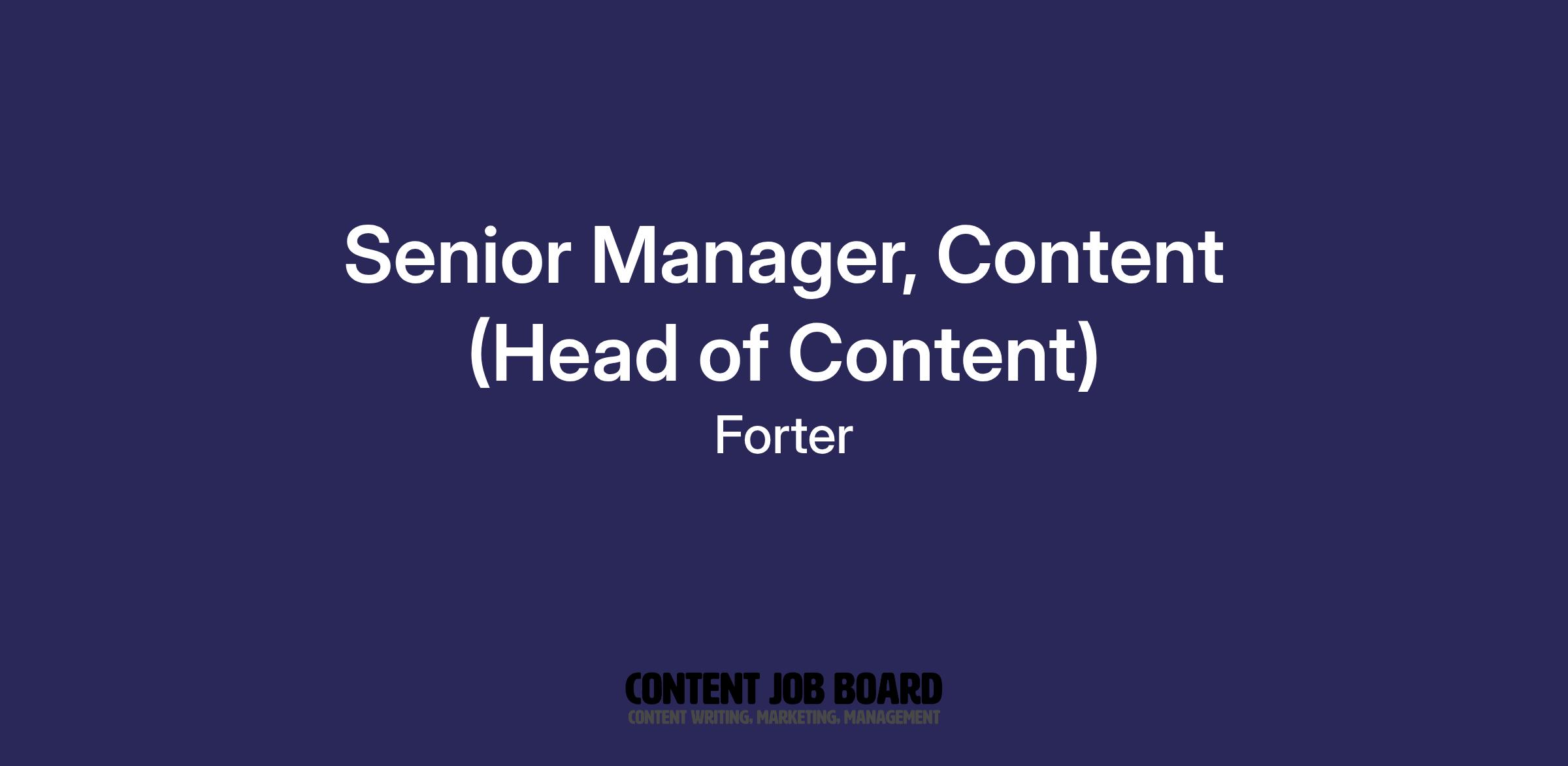 Forter is seeking an experienced, creative, and highly organized Senior Manager, Content (Head of Content) to lead our content strategy and execution. This position is both hand-on and highly strategic with an opportunity to create content that drives demand, builds authority, and educates the market.
