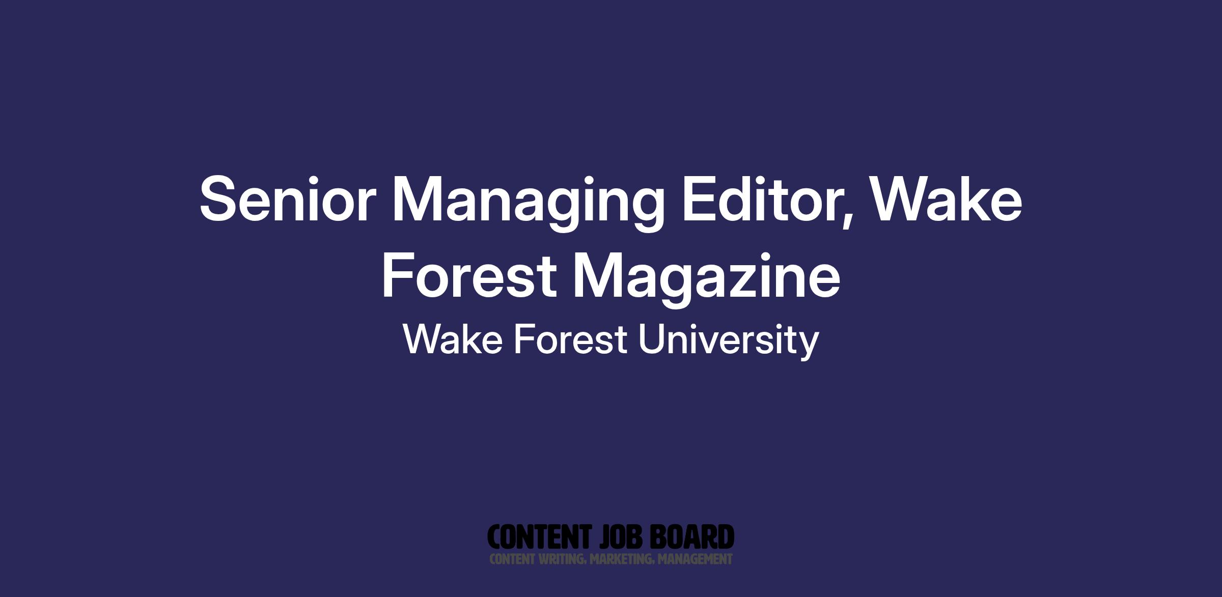 Develops the content, delivery, and marketing of Wake Forest Magazine (WFM) in print and online. Expands the concept of the Magazine to incorporate a multi-media approach to content that is personalized and delivered through print, web, social media and a newsletter. Establishes partnership with the University Advancement storytelling apparatus (in collaboration with the Associate VP) to connect the storytelling power of the magazine with UA communication strategies.Job Description