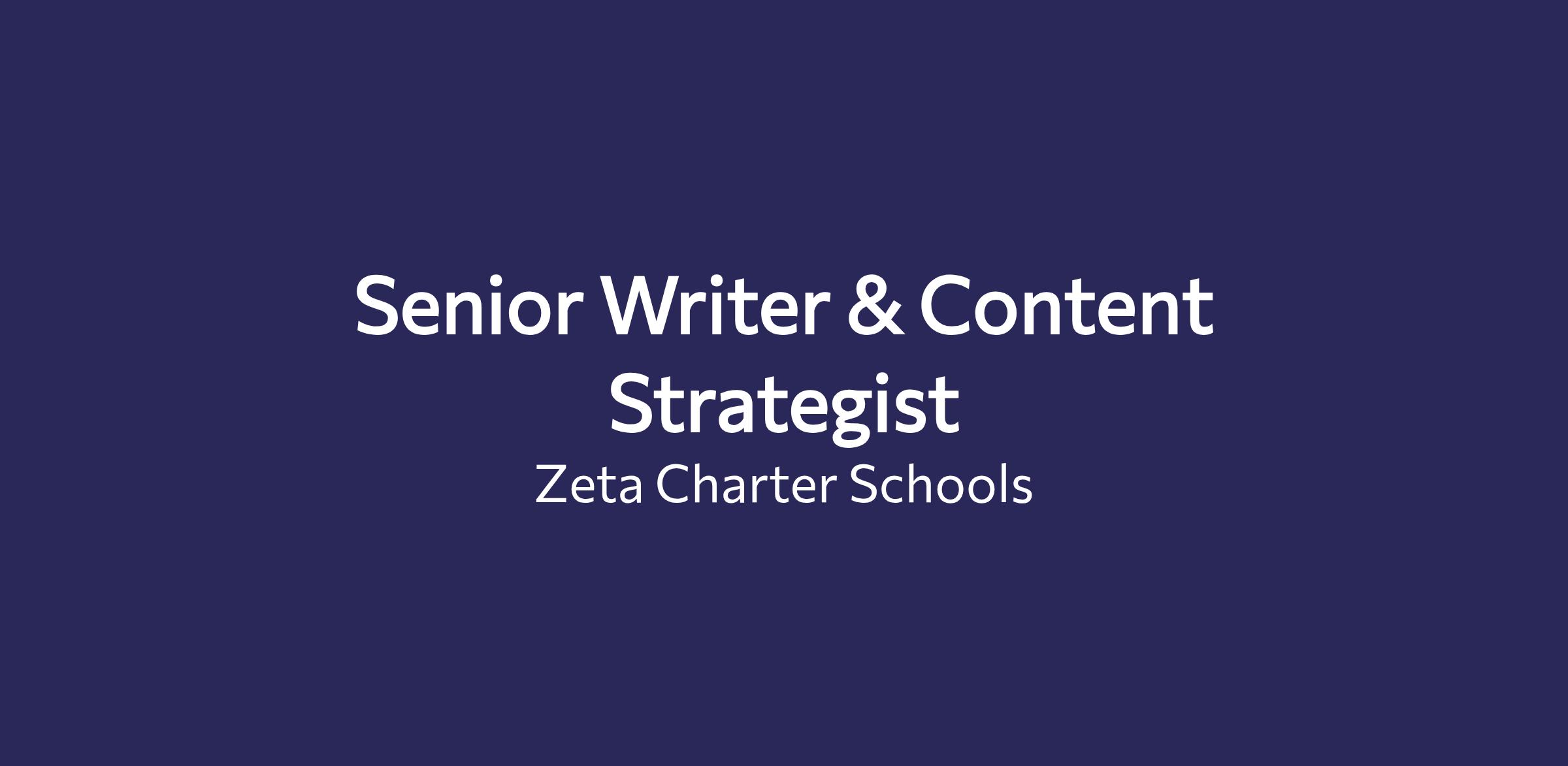 Equity is at the heart of our mission. We have a deep commitment to pursuing diversity and striving for equity. Zeta is an equal opportunity employer. Candidates of all backgrounds are encouraged to apply. Work authorization is required (candidate must have permanent authorization to work in the U.S.).