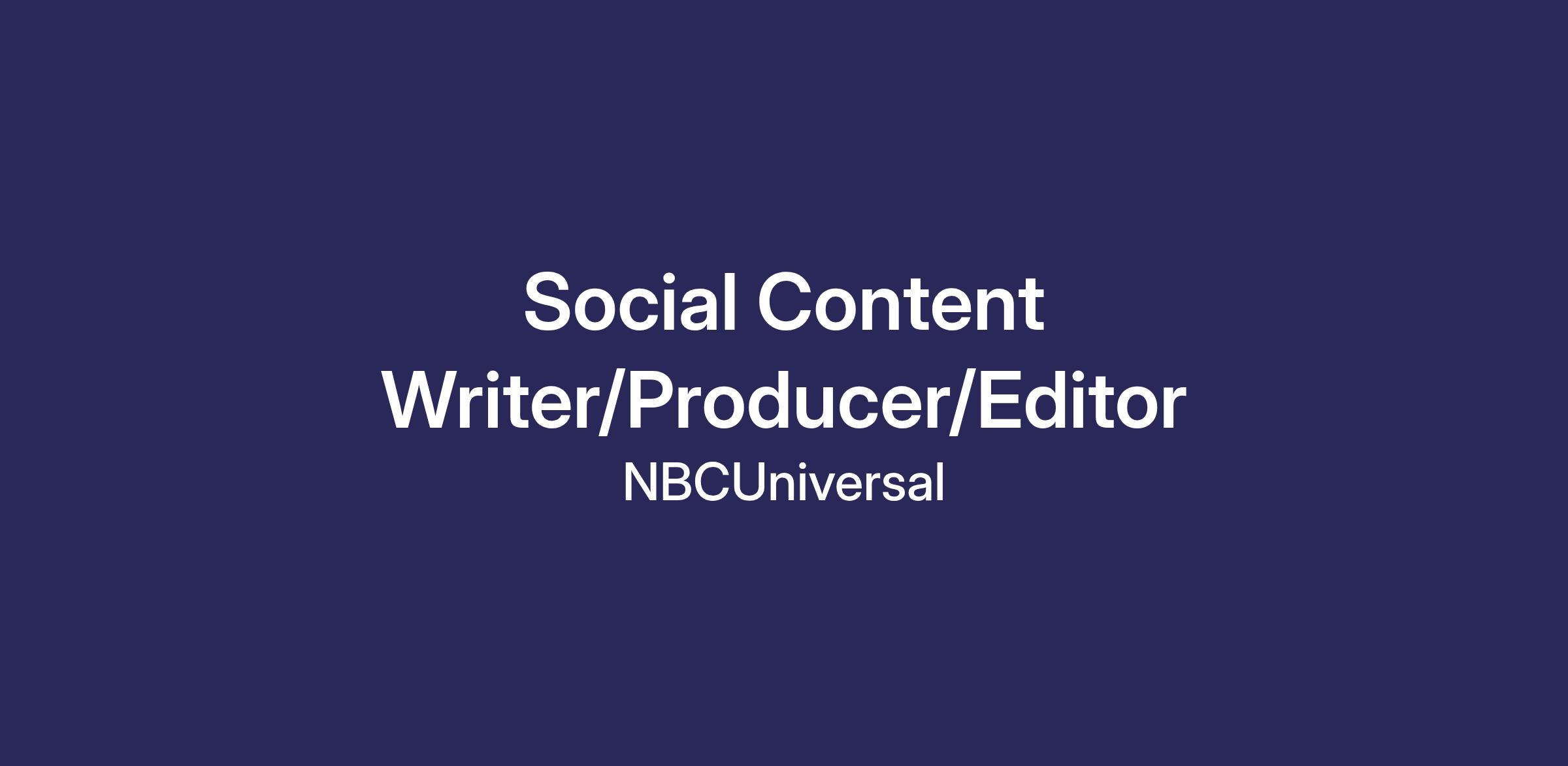 NBC Entertainment Marketing Video Creative is seeking an exceptionally talented Social Content Writer/Producer/Editor who is brilliant at crafting social and digital content with a keen ability to tell different types of stories for all social platforms. This position requires a person with a unique talent for blazing new creative trails in the invention of smart, eye catching, high impact, compelling, original social content that drives engagement, make people stop, interact, and interact with all NBC shows (drama, comedy, unscripted, specials, etc.).