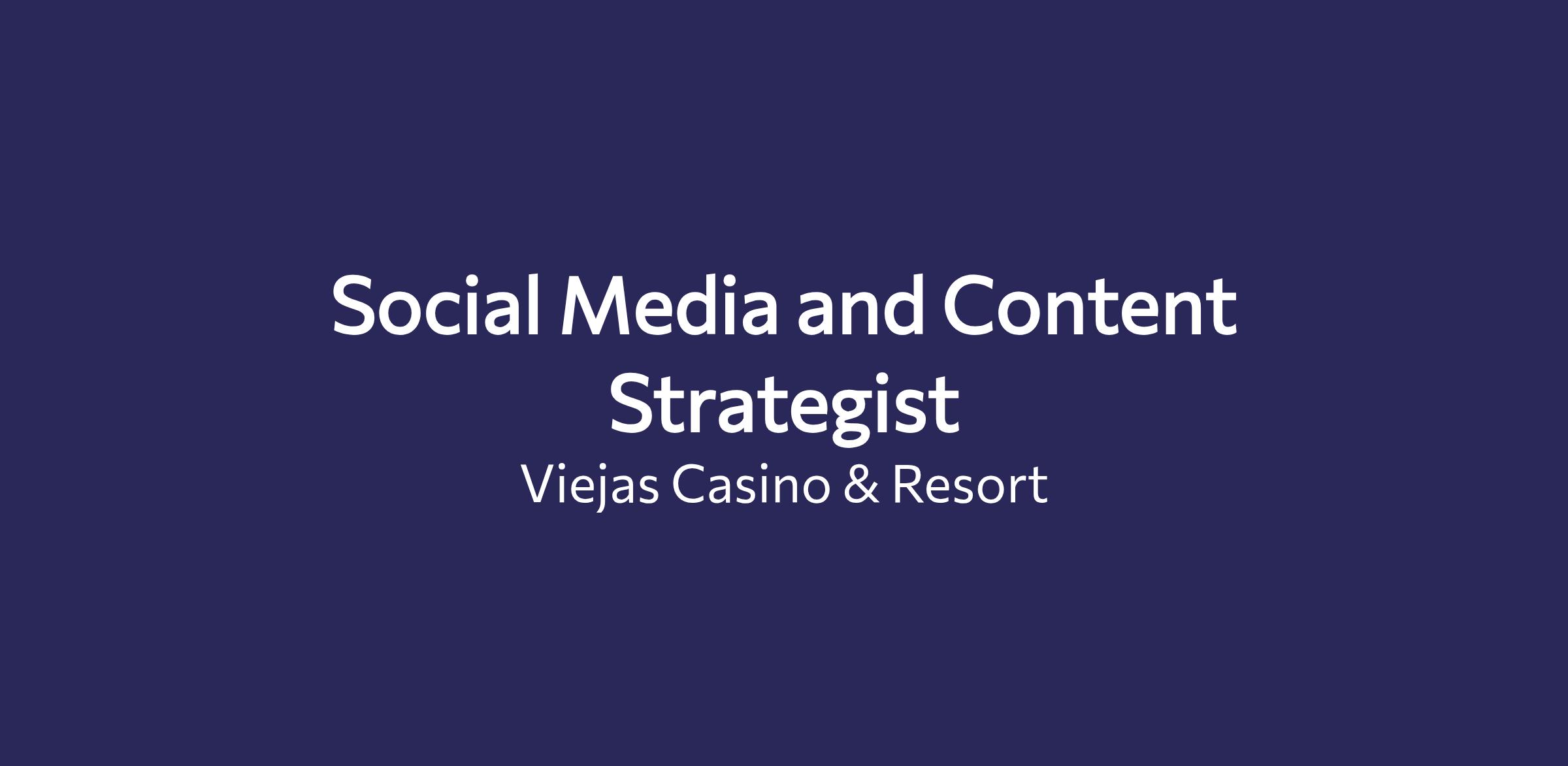 The Social Media and Content Strategist will write, review and edit marketing material and coordinate social media activities for Viejas Casino and Resort. Works collaboratively with staff from across the organization to promote their goals and messages while maintaining and aligning with brand messaging strategy and image. Executes and refines Viejas Casino and Resort credibility and builds communities to create integrated marketing campaigns ensuring consistency in voice and brand.