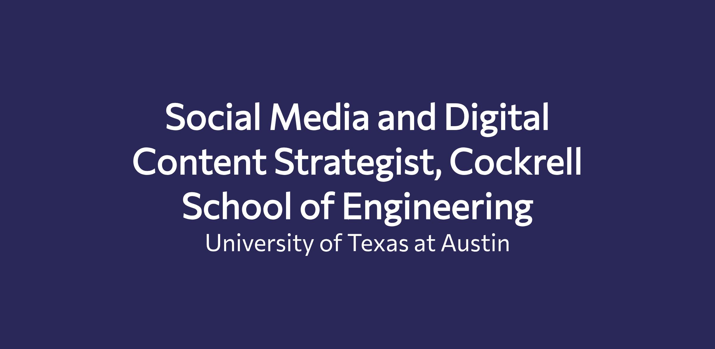 Social Media and Digital Content Strategist, Cockrell School of Engineering----