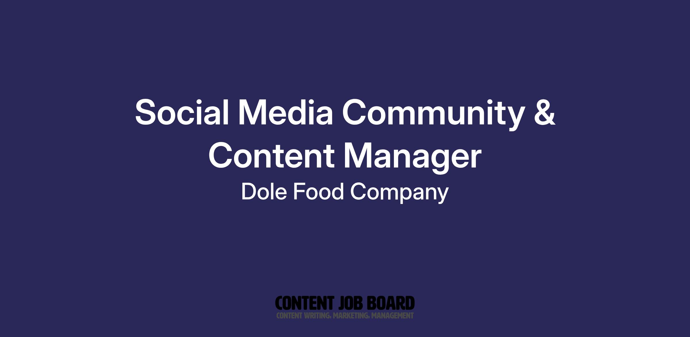The Social Media Community & Content Manager will engage Dole’s digital community by implementing social interactions through new content execution and development, participating in discussions, attending live events, identifying new consumers and listening and responding to the current ones. This in-office position is part of the social media team, working closely with other members of the social media, communications and marketing teams.