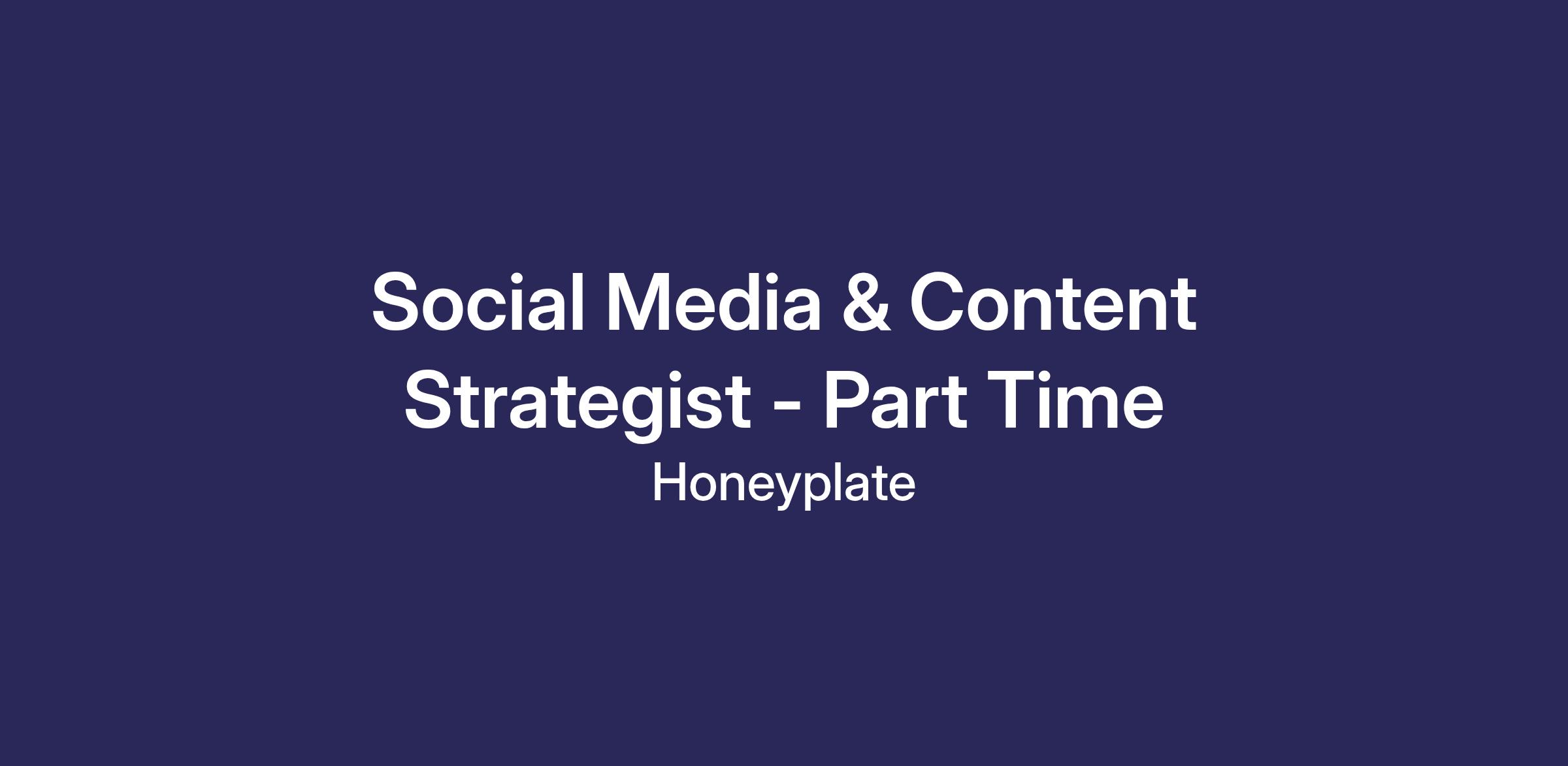 Social Media & Content Strategist - Part Time