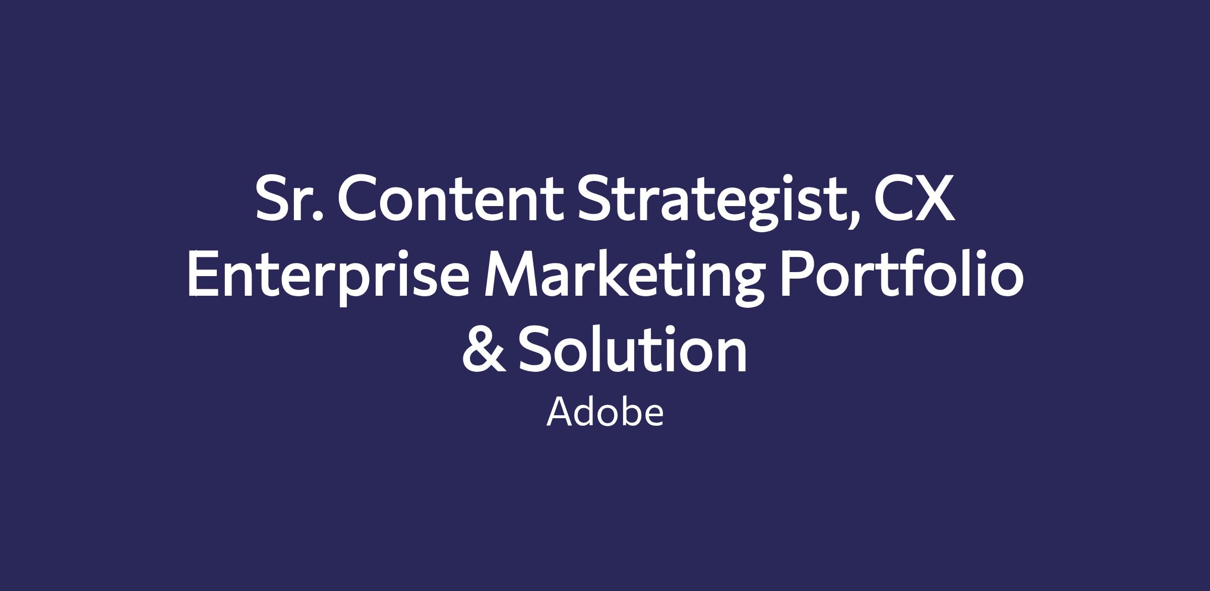 Adobe Enterprise Marketing is seeking a Sr. Content Strategist to join our Portfolio & Solution Content Strategy Team, supporting products in our business productivity and brand visibility categories. This role shapes how our enterprise portfolio shows up in market; defining narratives, guiding content direction, and ensuring our content helps customers understand value, differentiation, and use cases across channels.
